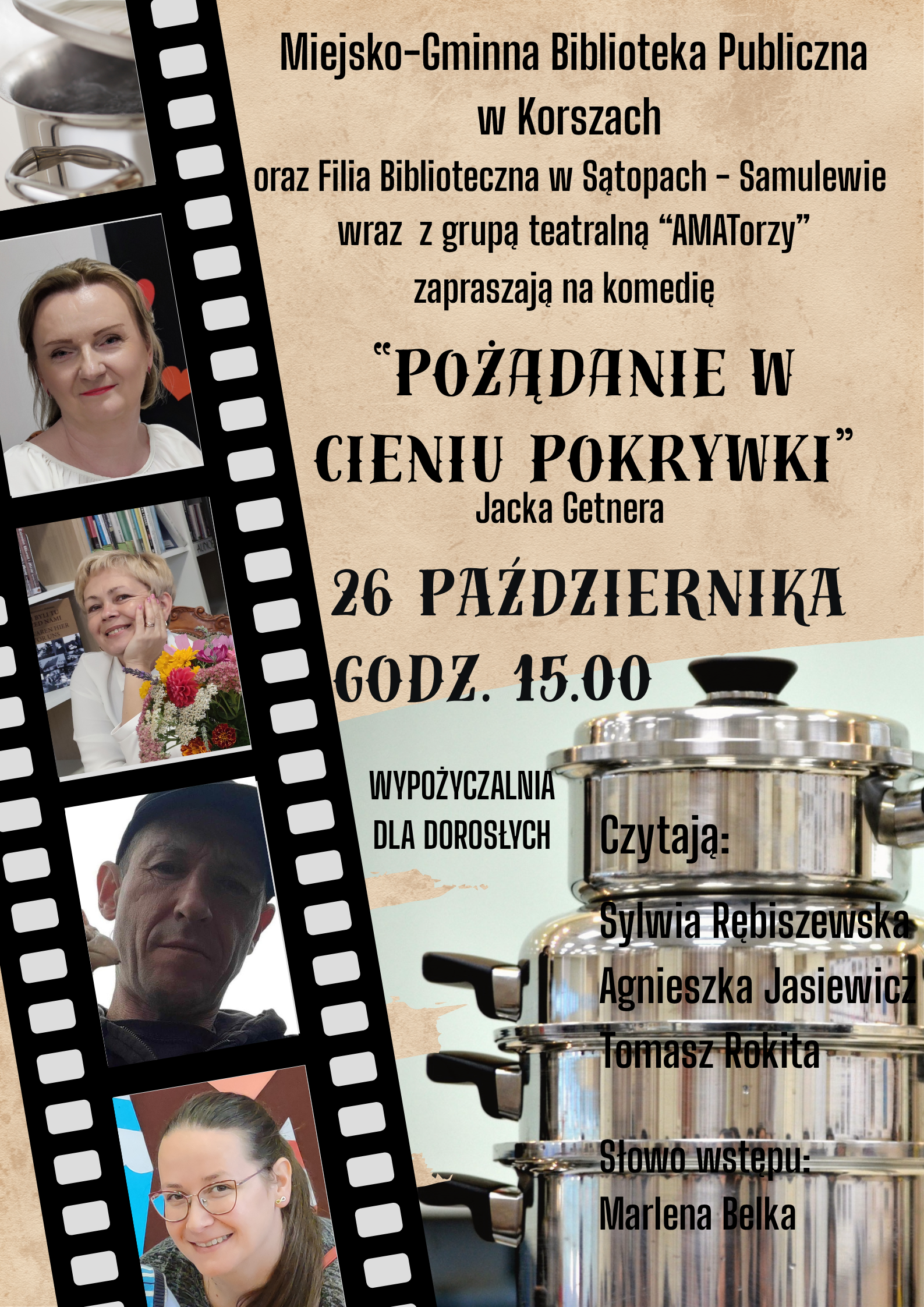 Gościliśmy grupę AMATorzy z Filii Bibliotecznej w Satopach-Samulewie, która zaprezentowała pełną humoru, emocji i historii z życia wziętych sztukę pt. „Pożądanie w cieniu pokrywki”.