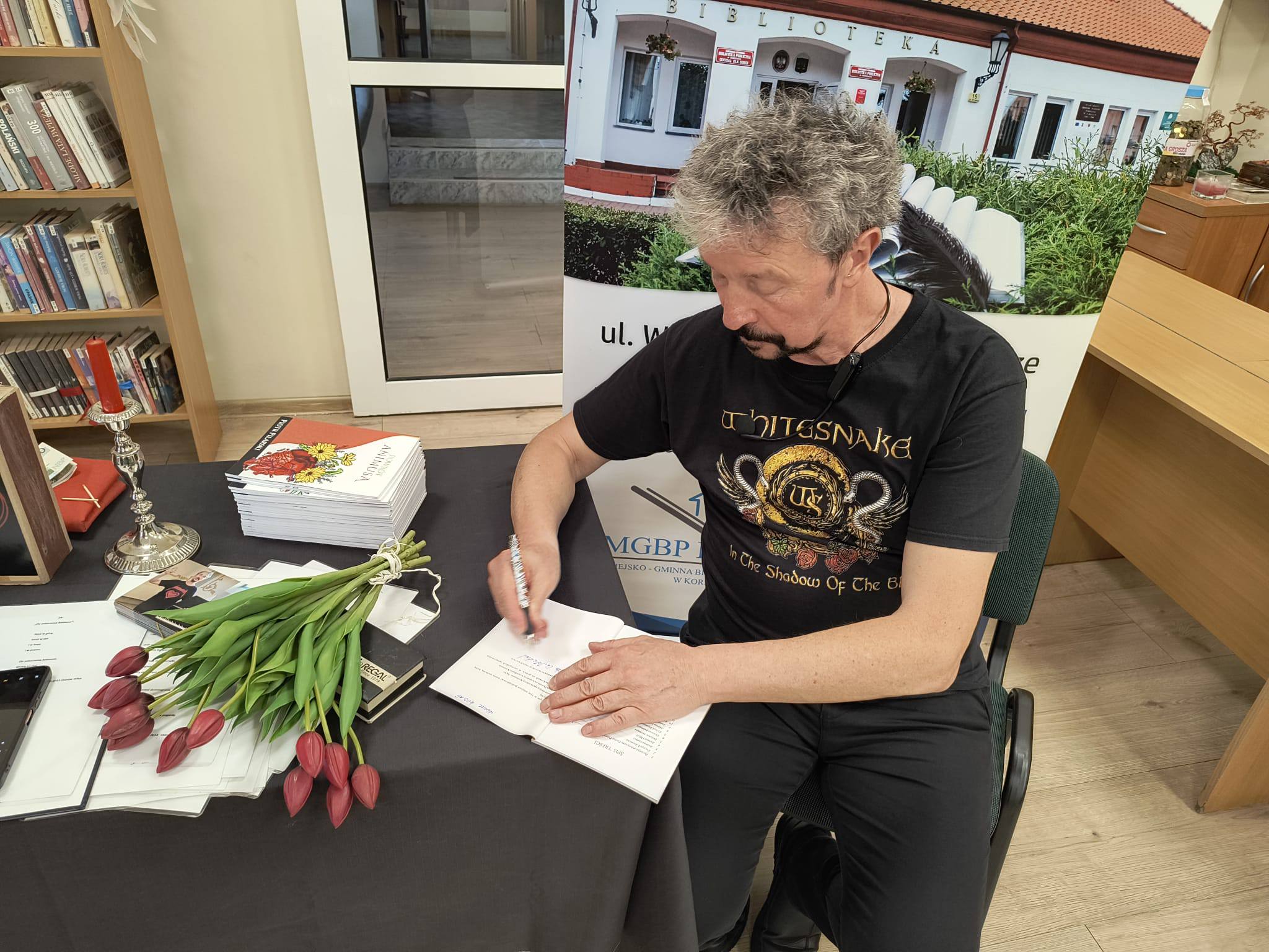 Z okazji Dnia Kobiet w bibliotece gościliśmy wyjątkowego artystę Piotra Pilarskiego, który zaprezentował recital poetycko‑muzyczny pt. „Animus – serce moje”.