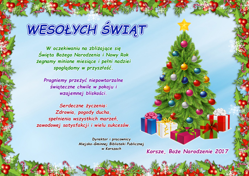 15 grudnia w Miejsko-Gminnej Bibliotece Publicznej w Korszach odbyło się Spotkanie Opłatkowe Klubu Seniora „Pod Dębem”. Na spotkanie przybyli Pan Ryszard Ostrowski Burmistrz Korsz oraz Pani Jadwiga Hajduk Dyrektor Biblioteki, która powitała seniorów i przybyłych gości...
