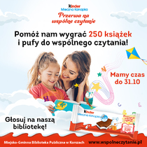 GŁOSUJ NA MIEJSKO-GMINNĄ BIBLIOTEKĘ PUBLICZNĄ W KORSZACH W RAMACH KONKURSU "KINDER MLECZNA KANAPKA - PRZERWA NA WSPÓLNE CZYTANIE"