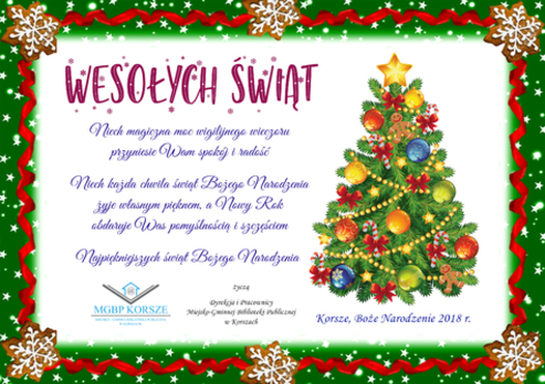 Święta Bożego Narodzenia coraz bliżej, dlatego też w Miejsko-Gminnej Bibliotece Publicznej w Korszach nie mogło zabraknąć spotkań związanych z tradycjami świątecznymi w Polsce oraz w innych krajach...