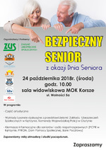 Zapraszamy na spotkanie „Bezpieczny senior” z okazji Dnia Seniora, które odbędzie się 24 października 2018 r. (środa) o godz. 10:00 w sali widowiskowej MOK Korsze.