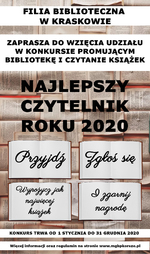 Filia Biblioteczna w Kraskowie zaprasza do wzięcia udziału w konkursie promującym bibliotekę i czytanie książek pt. „Najlepszy czytelnik roku 2020”.