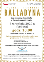 5 września 2020 roku o godz. 10:00 w Miejsko-Gminnej Bibliotece Publicznej w Korszach odbędzie się dziewiąta edycja Narodowego Czytania. Lekturą, którą wspólnie odczytamy będzie Balladyna Juliusza Słowackiego. Lektorami będą zaproszeni goście oraz mieszkańcy Korsz...