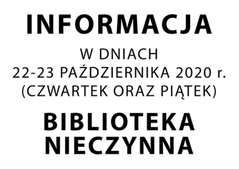 Biblioteki zamknięte są dla użytkowników do odwołania. Zdajemy sobie sprawę, że dla osób, które dużo czytają to wielkie utrudnienie i dyskomfort. My cały czas pracujemy i jesteśmy z Wami duchem i słowem. Przygotowujemy się do Waszego wielkiego powrotu i robimy wszystko, aby ten powrót był miłym zaskoczeniem.