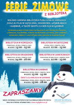 Miejsko-Gminna Biblioteka Publiczna w Korszach oraz jej filie w Sątocznie, Kraskowie, Łankiejmach i Garbnie, a także Świetlica Wiejska w Garbnie zapraszają dzieci na zajęcia w ferie zimowe: