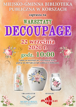 Miejsko-Gminna Biblioteka Publiczna w Korszach zaprasza na Warsztaty Decoupage, które odbędą się 22 września 2020 r. (wtorek) o godz. 10:00.
