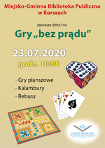 Drodzy Czytelnicy! Miło nam poinformować, że od września 2020 r. zaczęliśmy gromadzić dla Was gry planszowe i wprowadziliśmy możliwość ich wypożyczania. Zachęcamy wszystkich do skorzystania z tej usługi. W naszych zbiorach znajdziecie gry strategiczne, edukacyjne, literackie, historyczne, przygodowe i rodzinne...