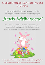 Filia Biblioteczna i Świetlica Wiejska w Garbnie zaprasza dzieci i młodzież do wzięcia udziału w konkursie plastycznym „Kartki Wielkanocne”.