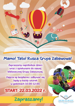 Zapraszamy najmłodsze dzieci wraz z opiekunami do naszej bibliotecznej Grupy Zabawowej. Zajęcia są bezpłatne i odbywać się będą w każdy wtorek w godzinach 10.00 - 12.00.