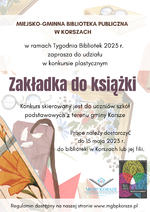 Miejsko-Gminna Biblioteka Publiczna w Korszach w ramach Tygodnia Bibliotek 2023 zaprasza do udziału w konkursie plastycznym „Zakładka do książki”.