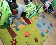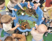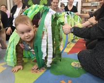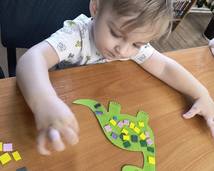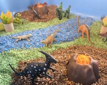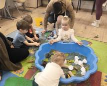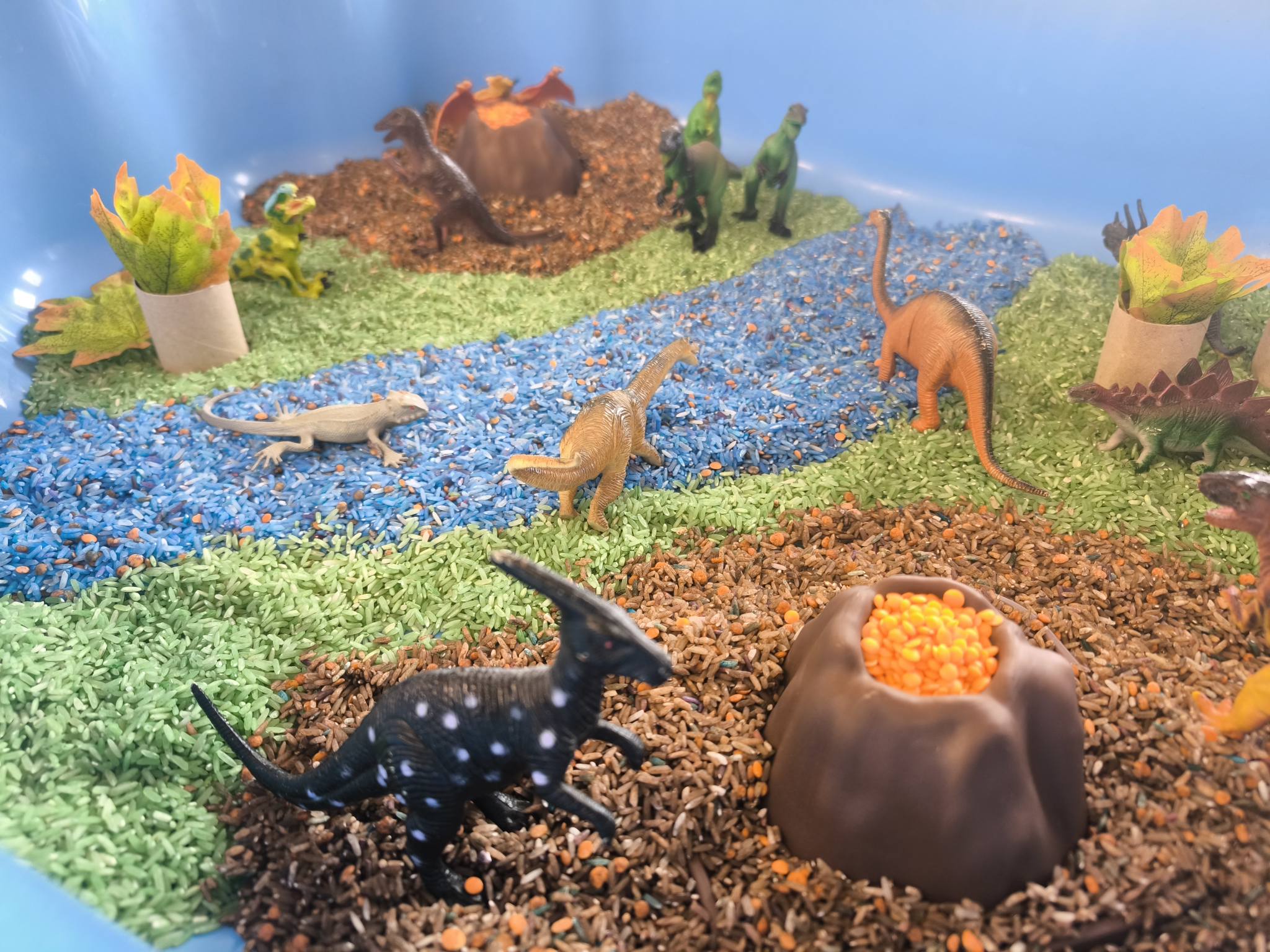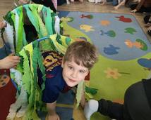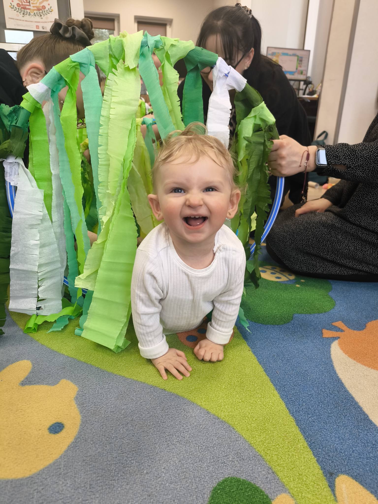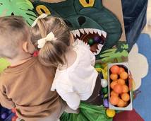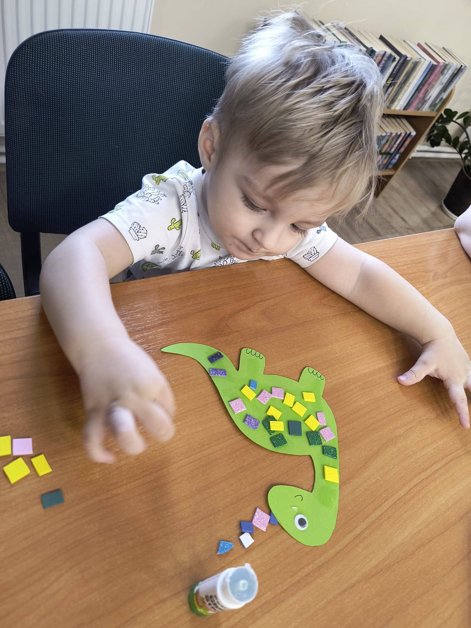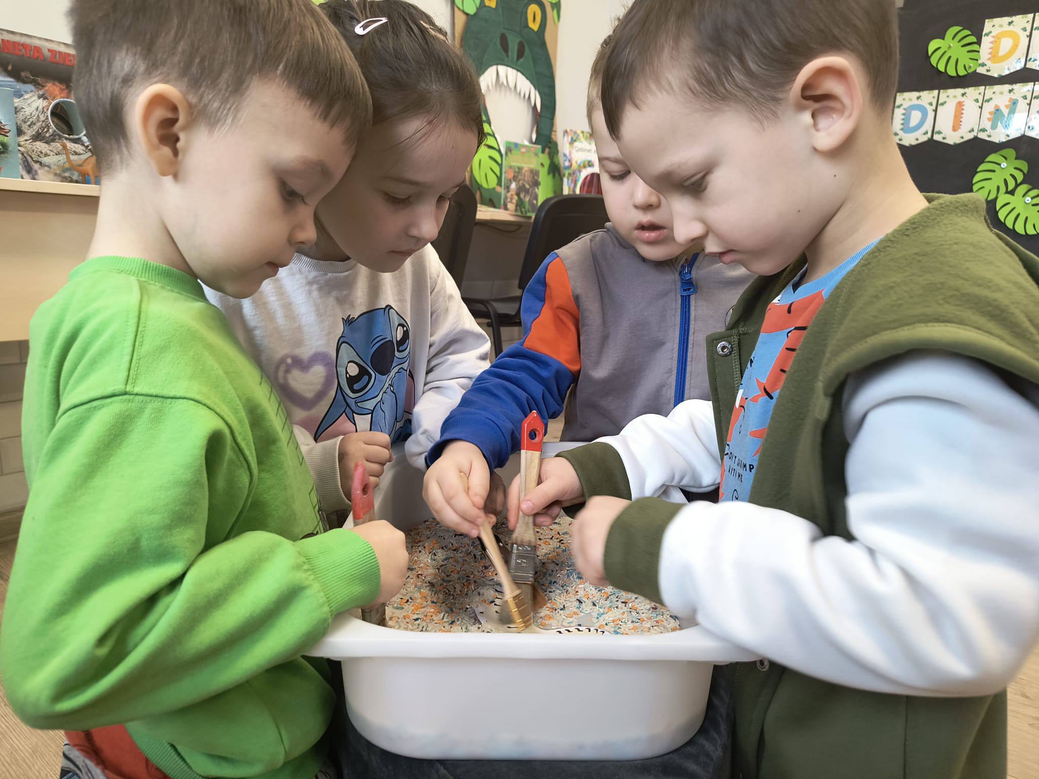 Prehistoryczną przygodę rozpoczęliśmy od spotkania grupy zabawowej. Było twórczo, sensorycznie i bardzo radośnie! Powstały błyszczące dinozaury, mali odkrywcy bawili się w krainie z wulkanami, a na zakończenie przemierzali „dżunglę”, odkrywając świat sprzed milionów lat. To był dopiero początek dinozaurowych emocji!