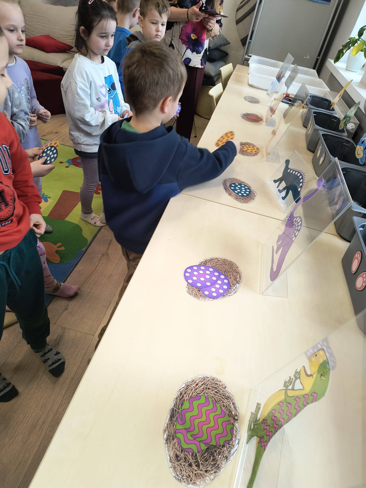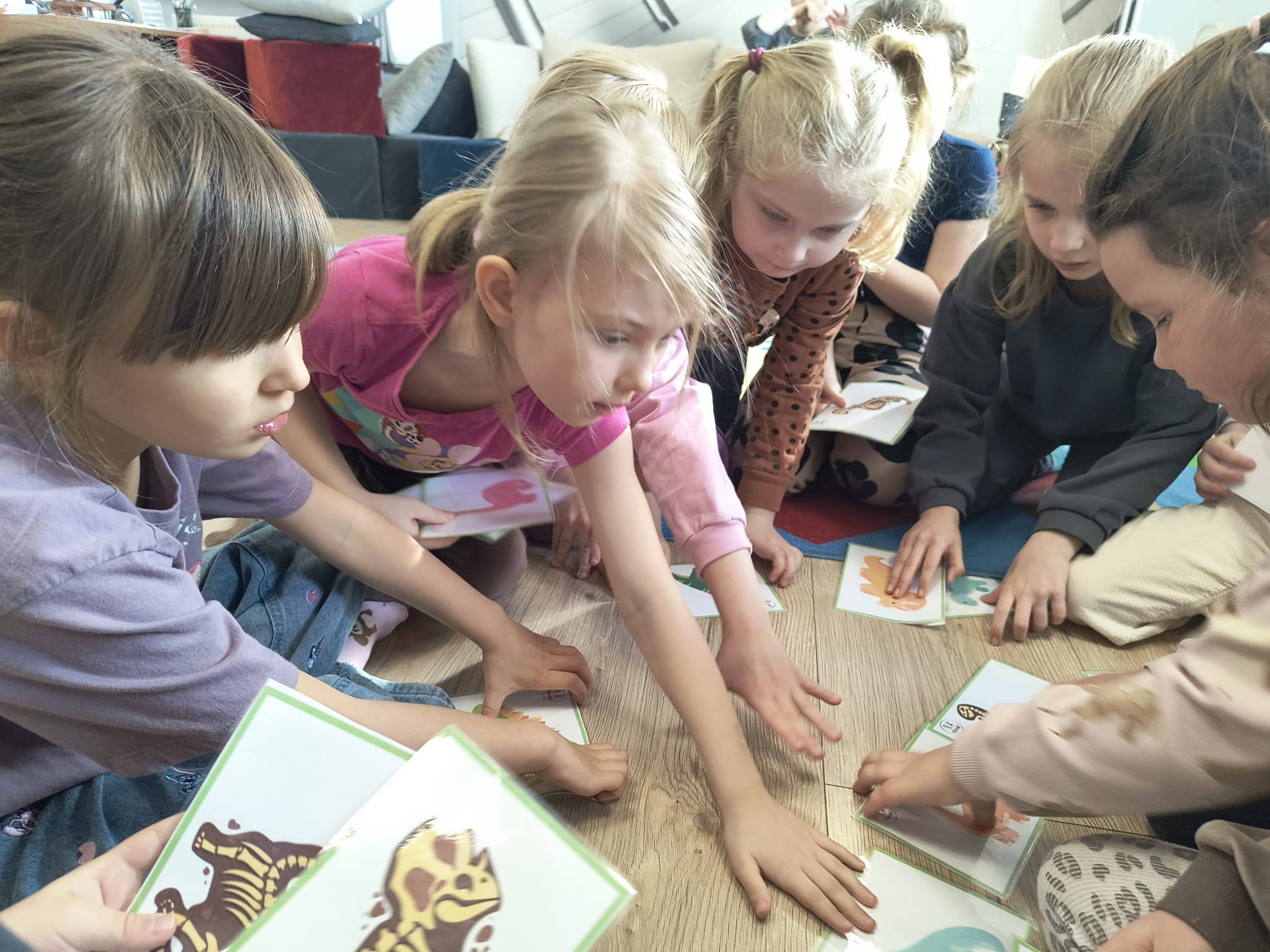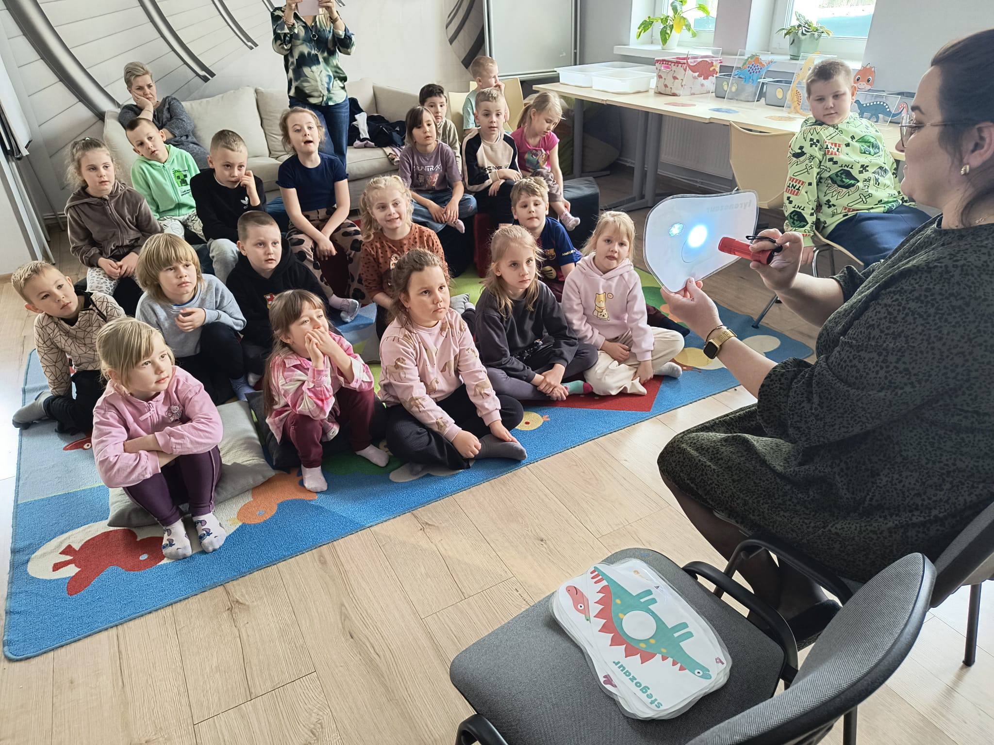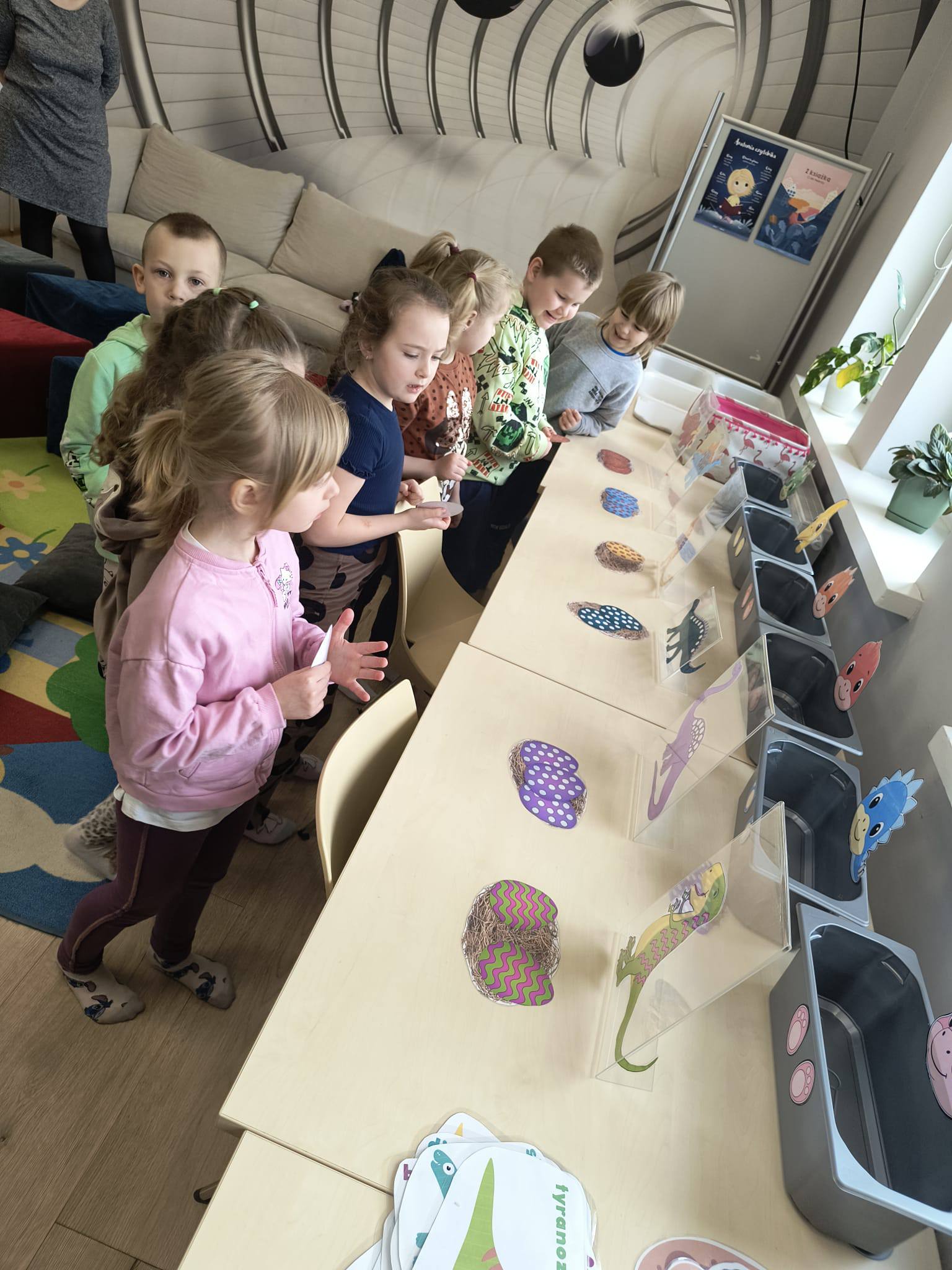 Odwiedziły nas urocze grupy: „Sówki”, „Krasnale” z Przedszkola Miejskiego w Korszach oraz „Zajączki”, które zwieńczyły cały cykl spotkań. Dzieci z ogromnym zainteresowaniem słuchały opowieści o tyranozaurach, triceratopsach i innych fascynujących stworzeniach. Pytań było mnóstwo – a niejednego paleontologa mogłyby zaskoczyć swoją wiedzą!