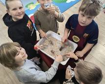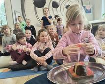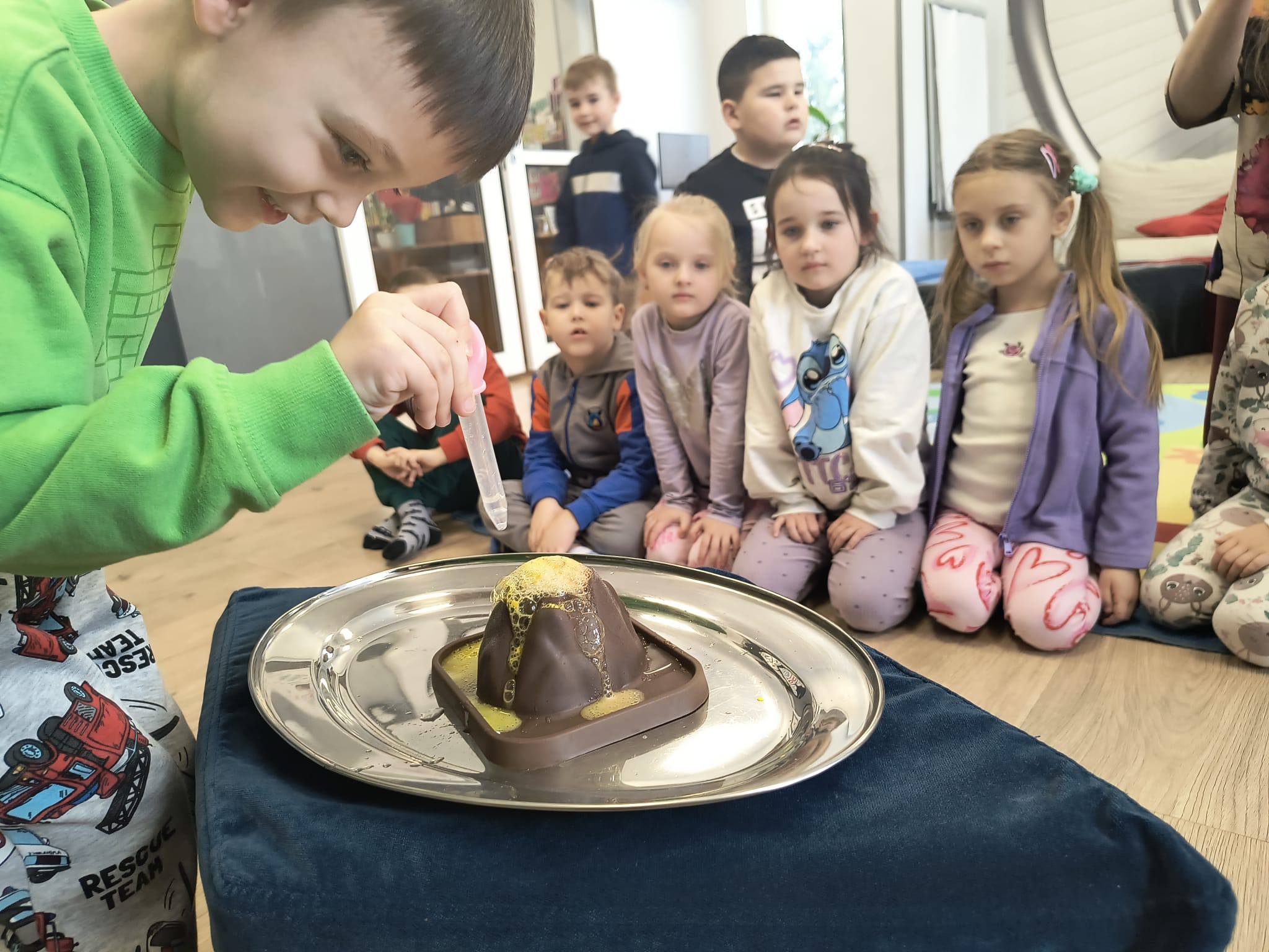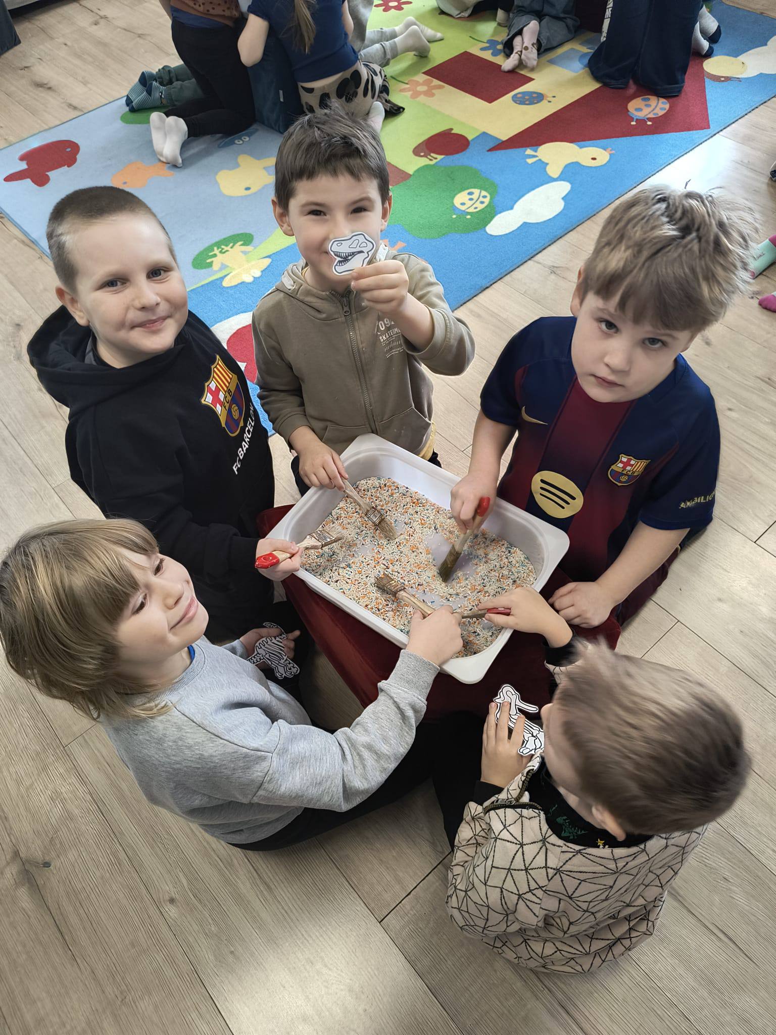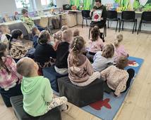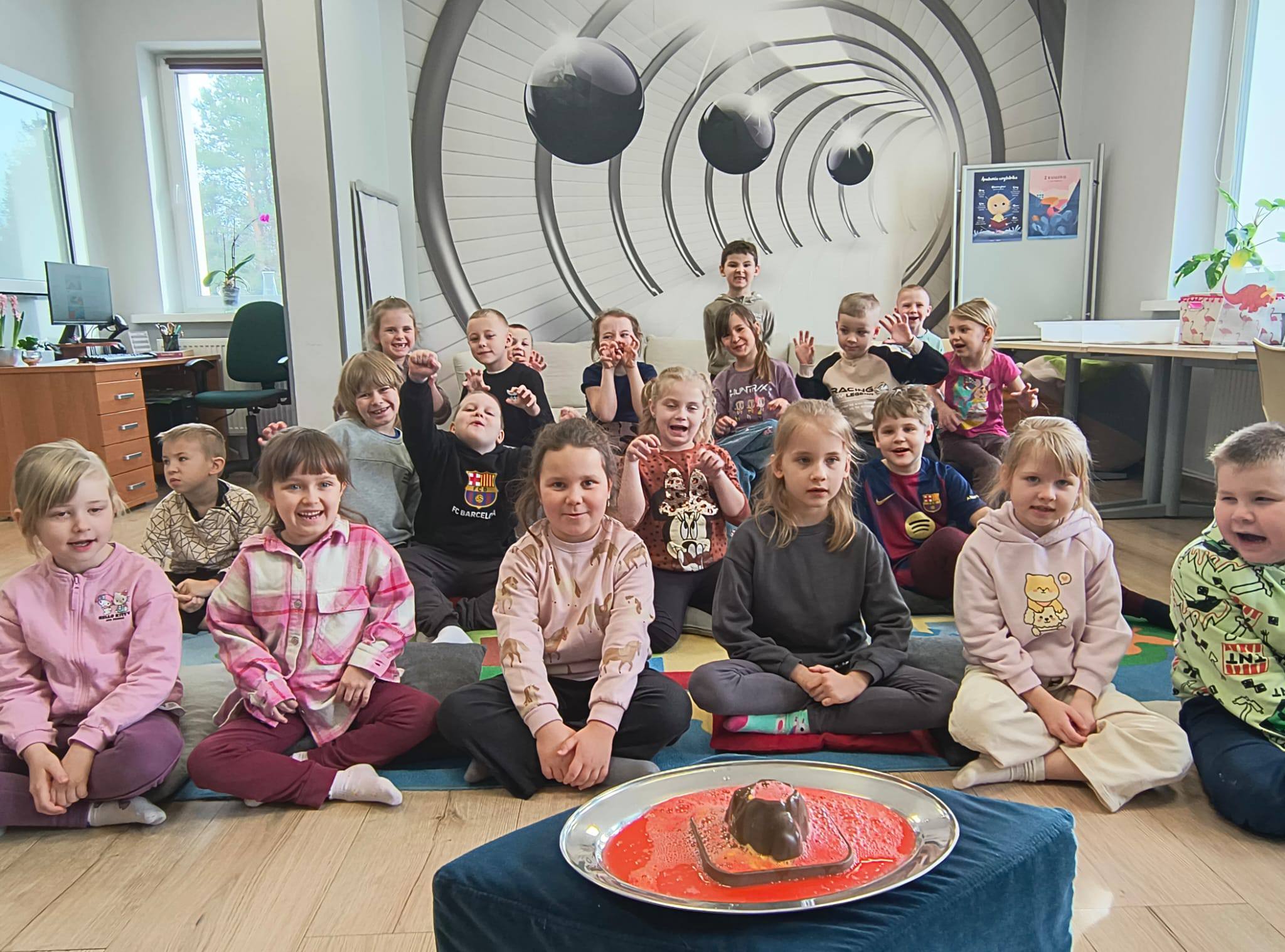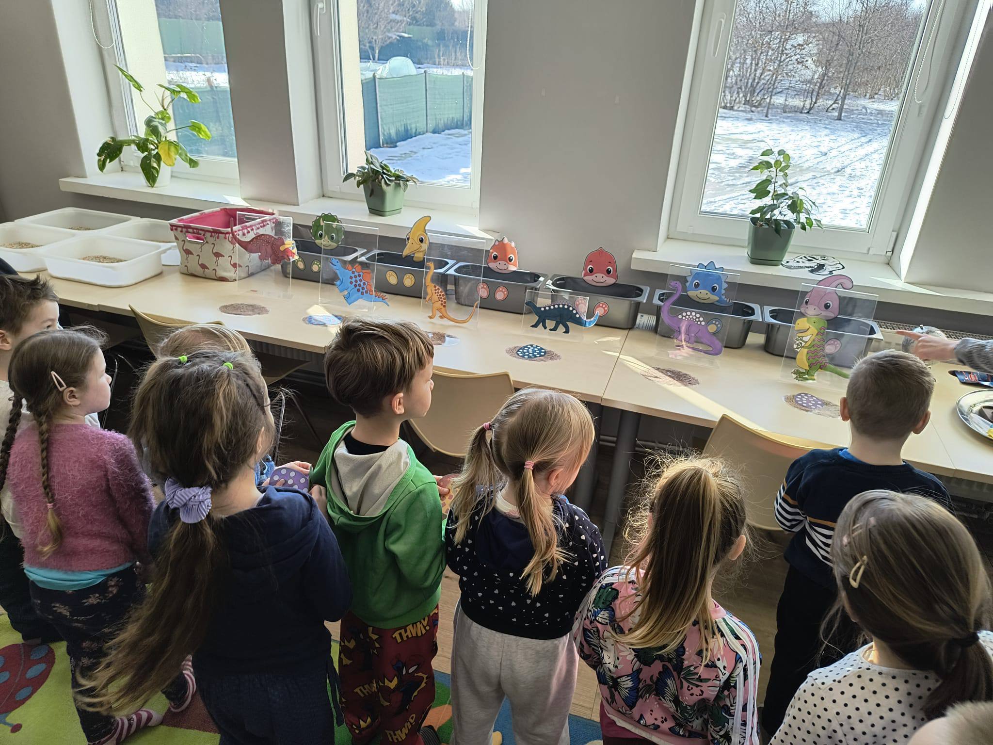 Odwiedziły nas urocze grupy: „Sówki”, „Krasnale” z Przedszkola Miejskiego w Korszach oraz „Zajączki”, które zwieńczyły cały cykl spotkań. Dzieci z ogromnym zainteresowaniem słuchały opowieści o tyranozaurach, triceratopsach i innych fascynujących stworzeniach. Pytań było mnóstwo – a niejednego paleontologa mogłyby zaskoczyć swoją wiedzą!