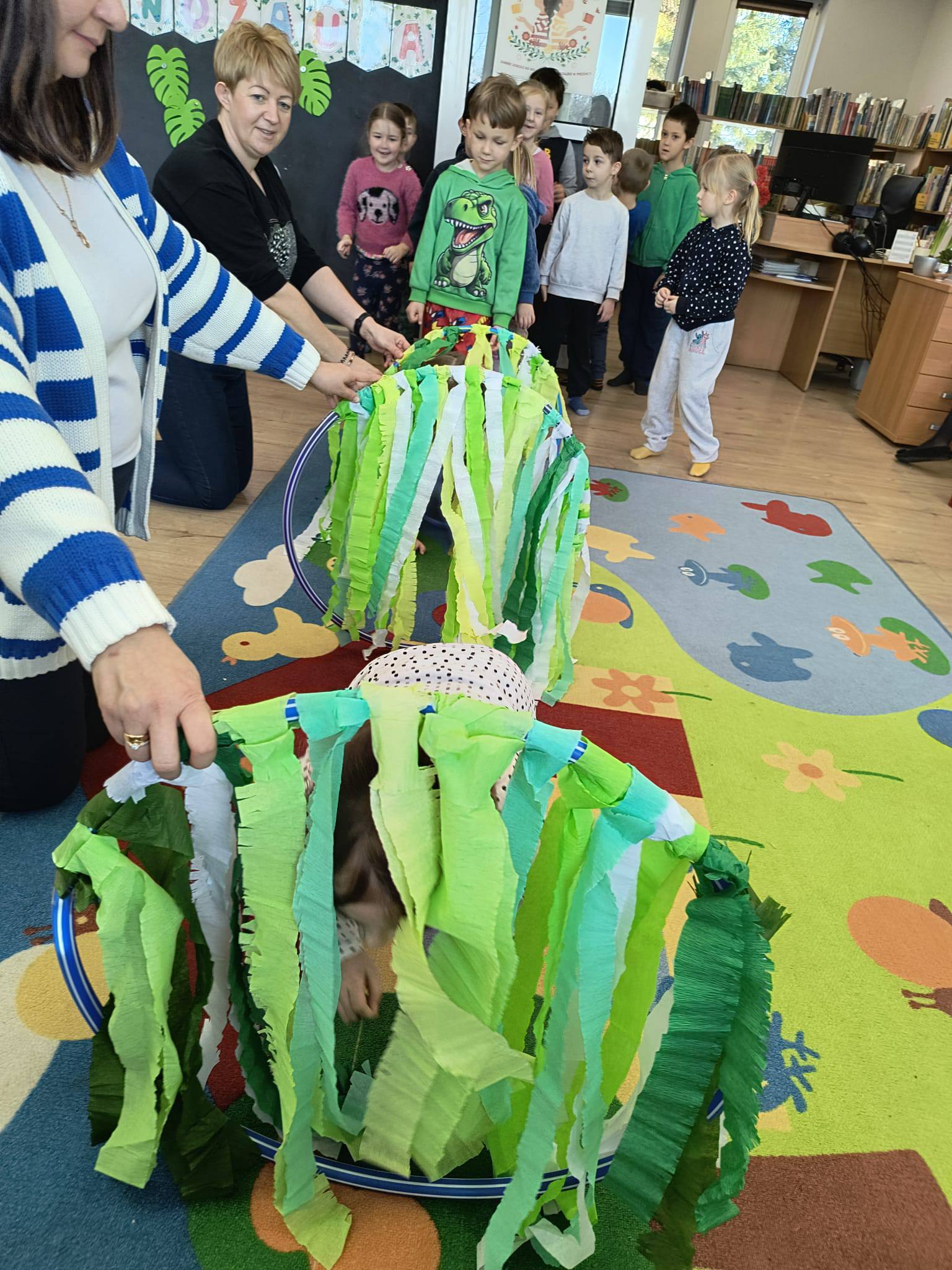 Po części czytelniczej zawsze przychodził czas na zabawę. Było dużo śmiechu, radości i twórczej energii. Takie spotkania pokazują, że biblioteka może być miejscem niezwykłych przygód, odkrywania świata i rozwijania pasji.
