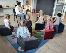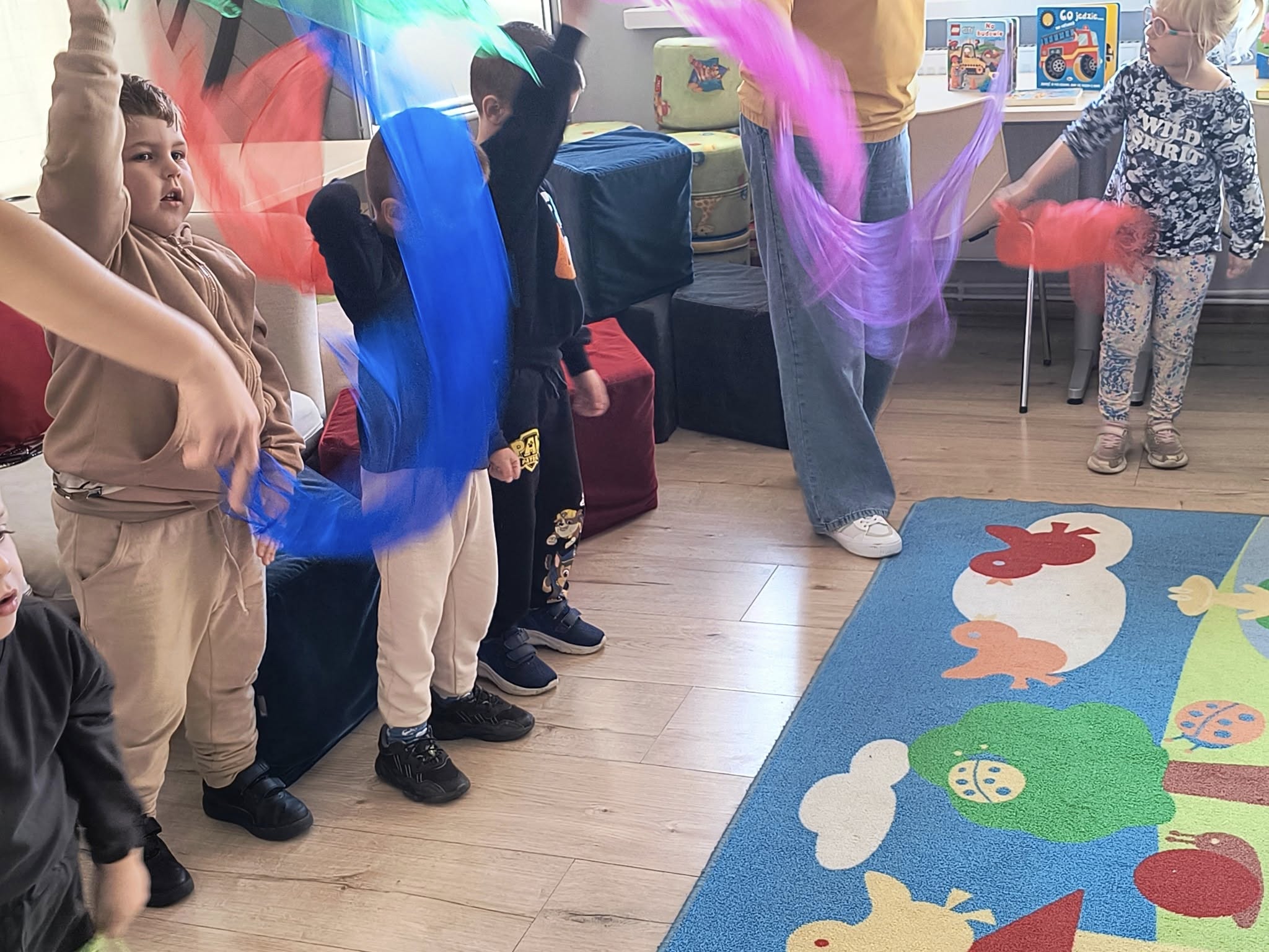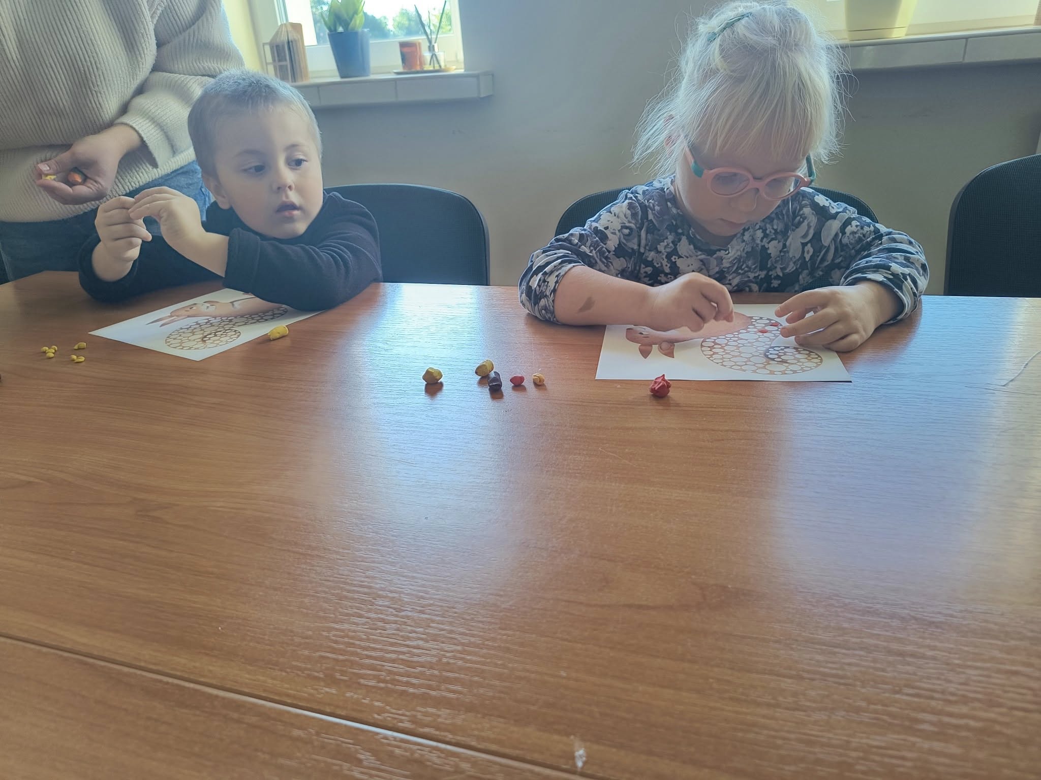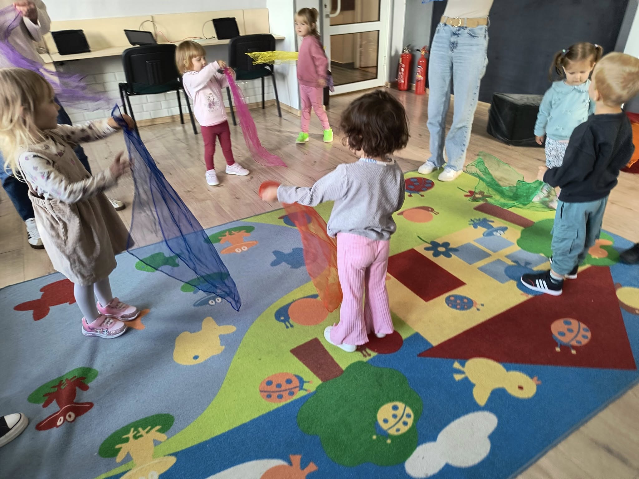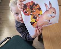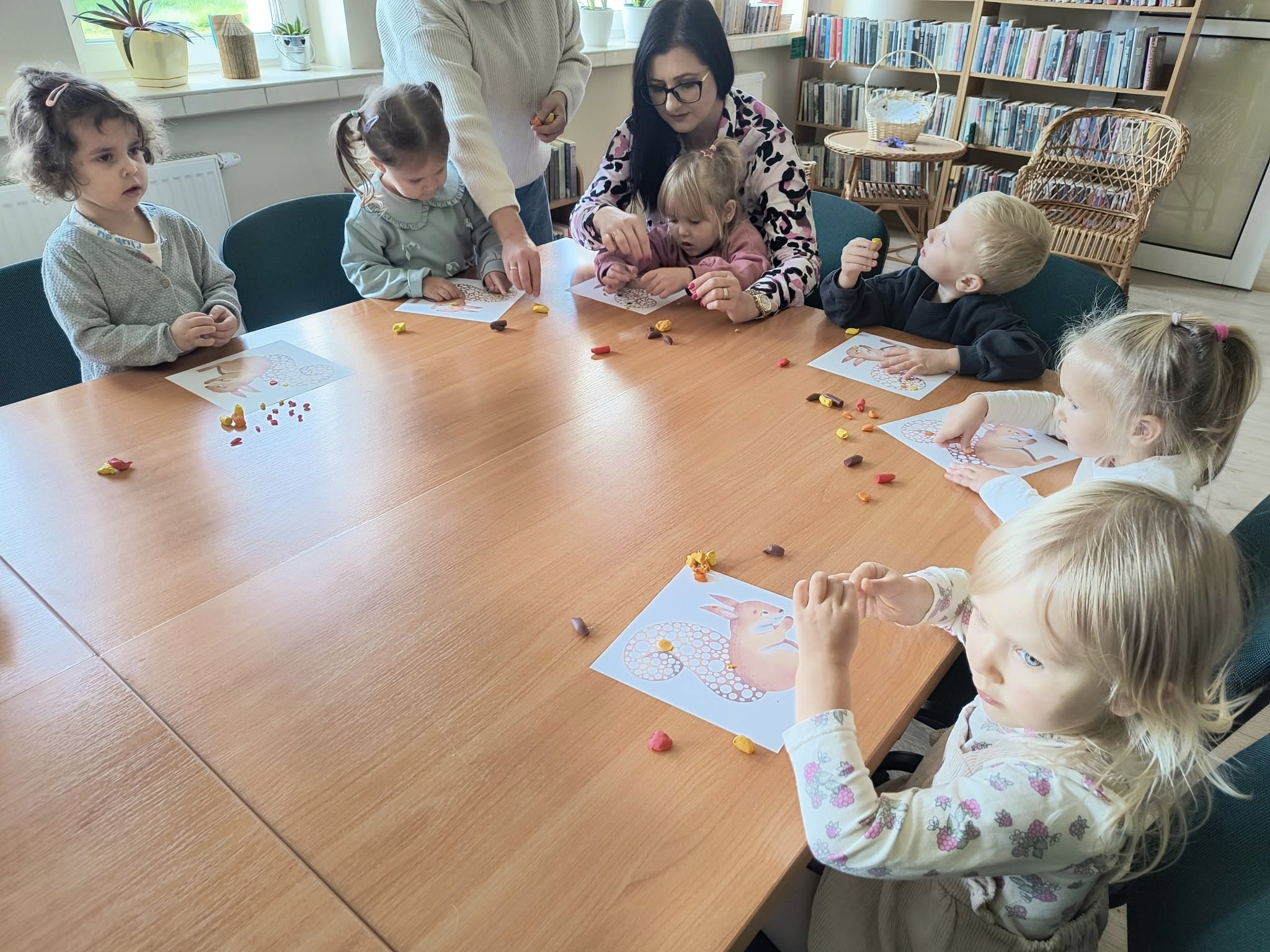 Dzieci słuchały wciągającego opowiadania „Złodziej liści”, a potem bawiły się przy jesiennych zabawachNie zabrakło też kreatywnych zajęć – przedszkolaki wyklejały wiewiórki, ćwicząc zdolności manualneBył to naprawdę miły czas, pełen uśmiechów, kolorowych liści i dobrej zabawy w świecie książek.