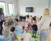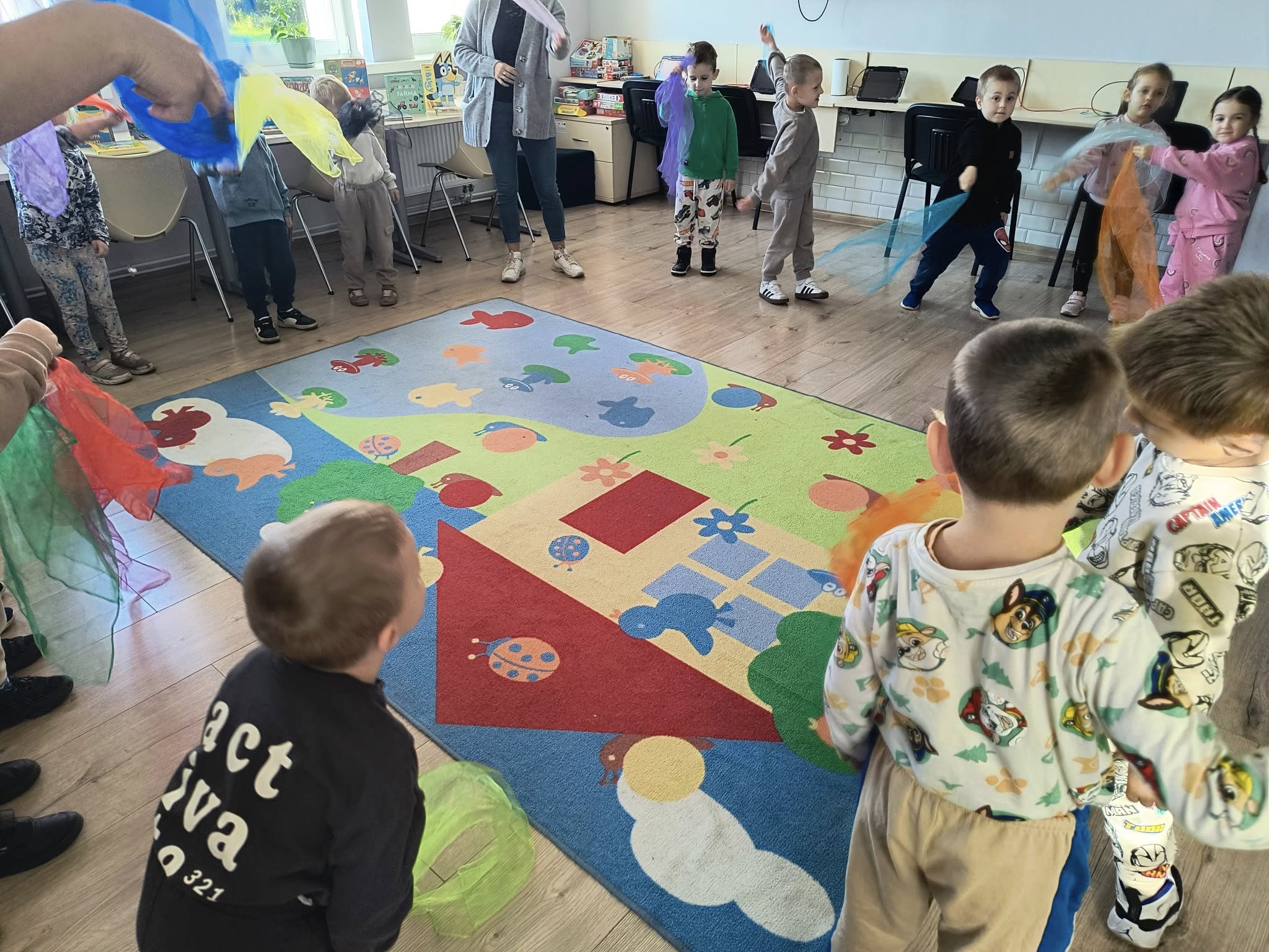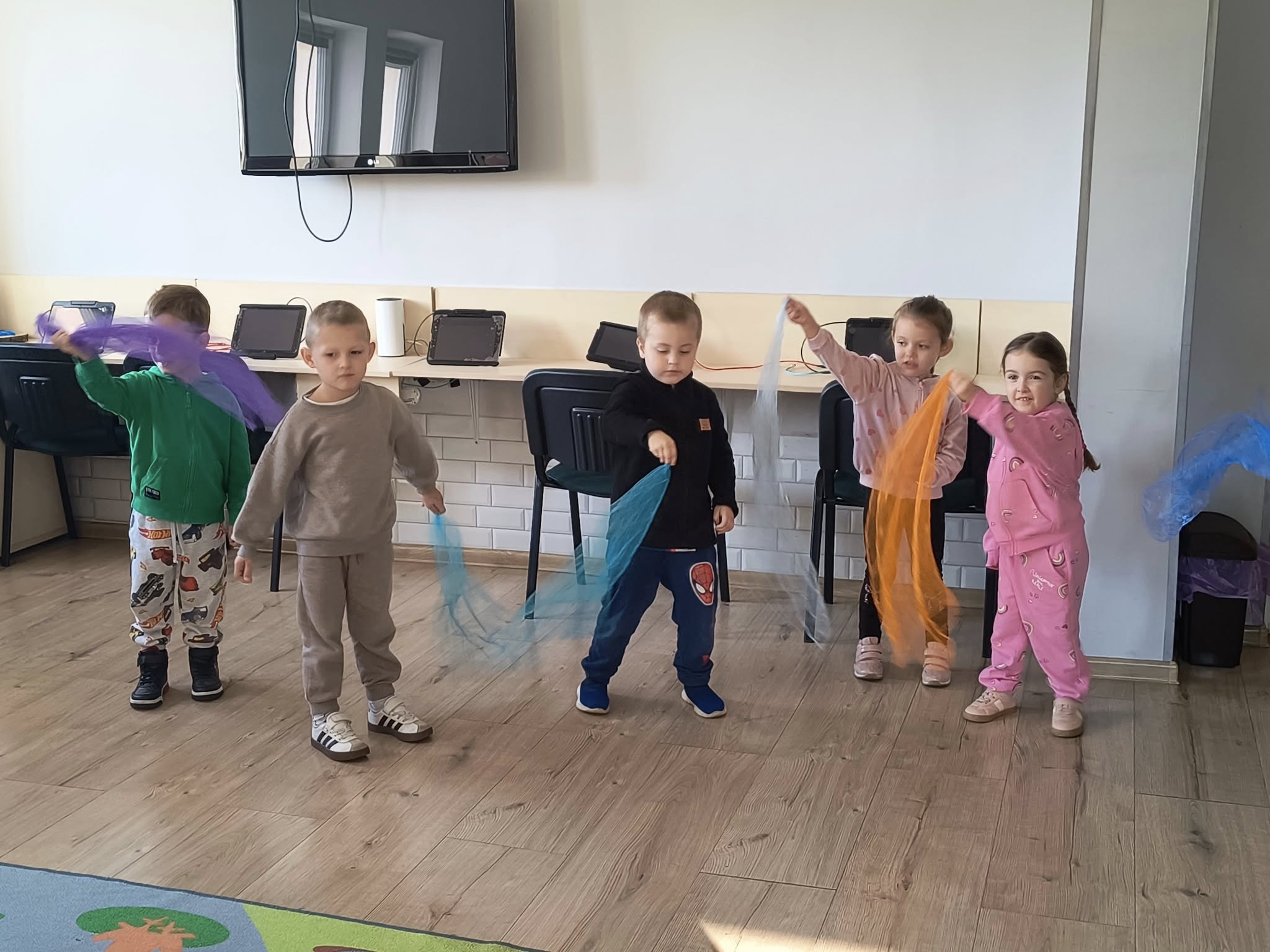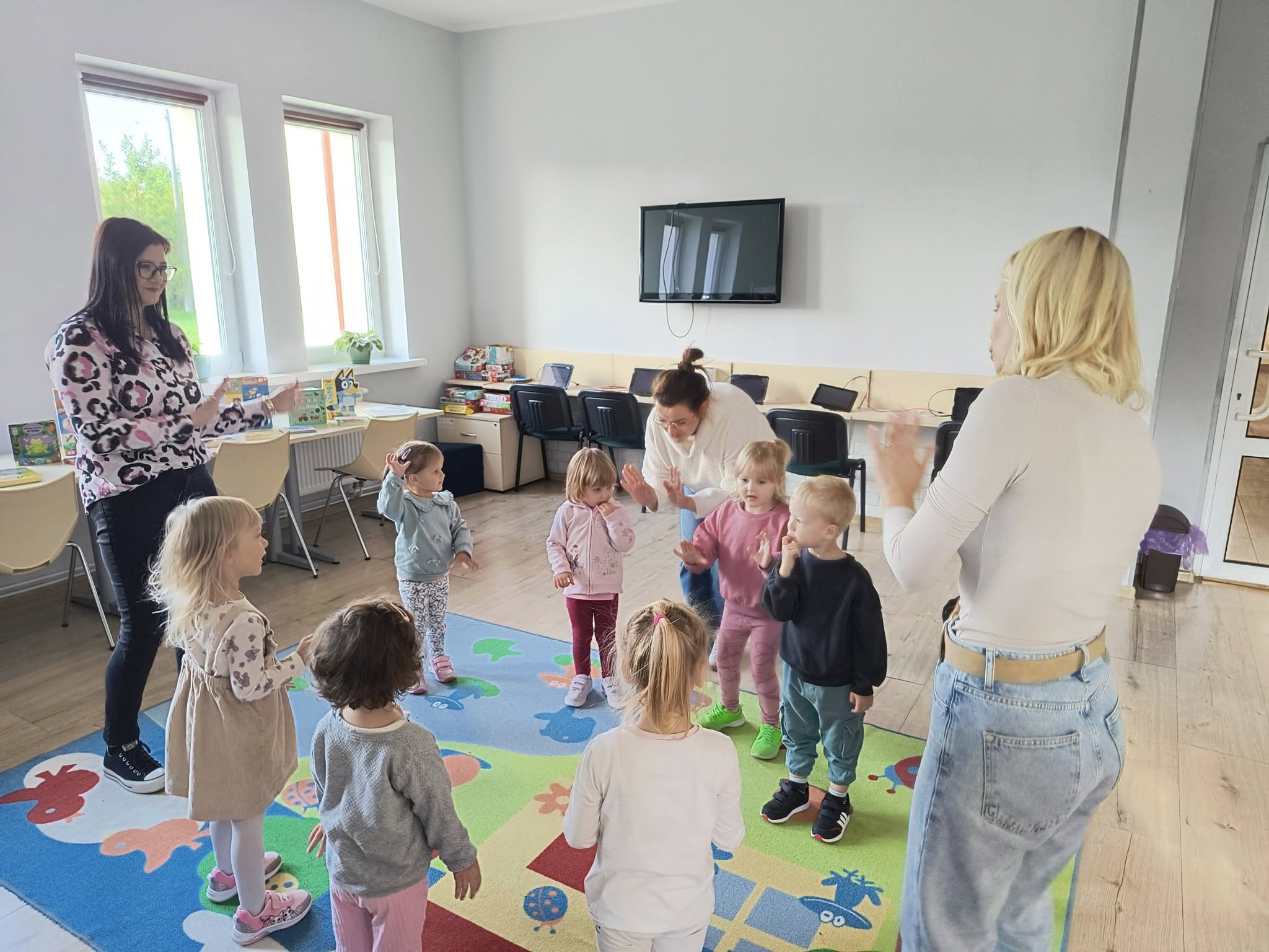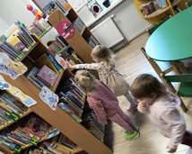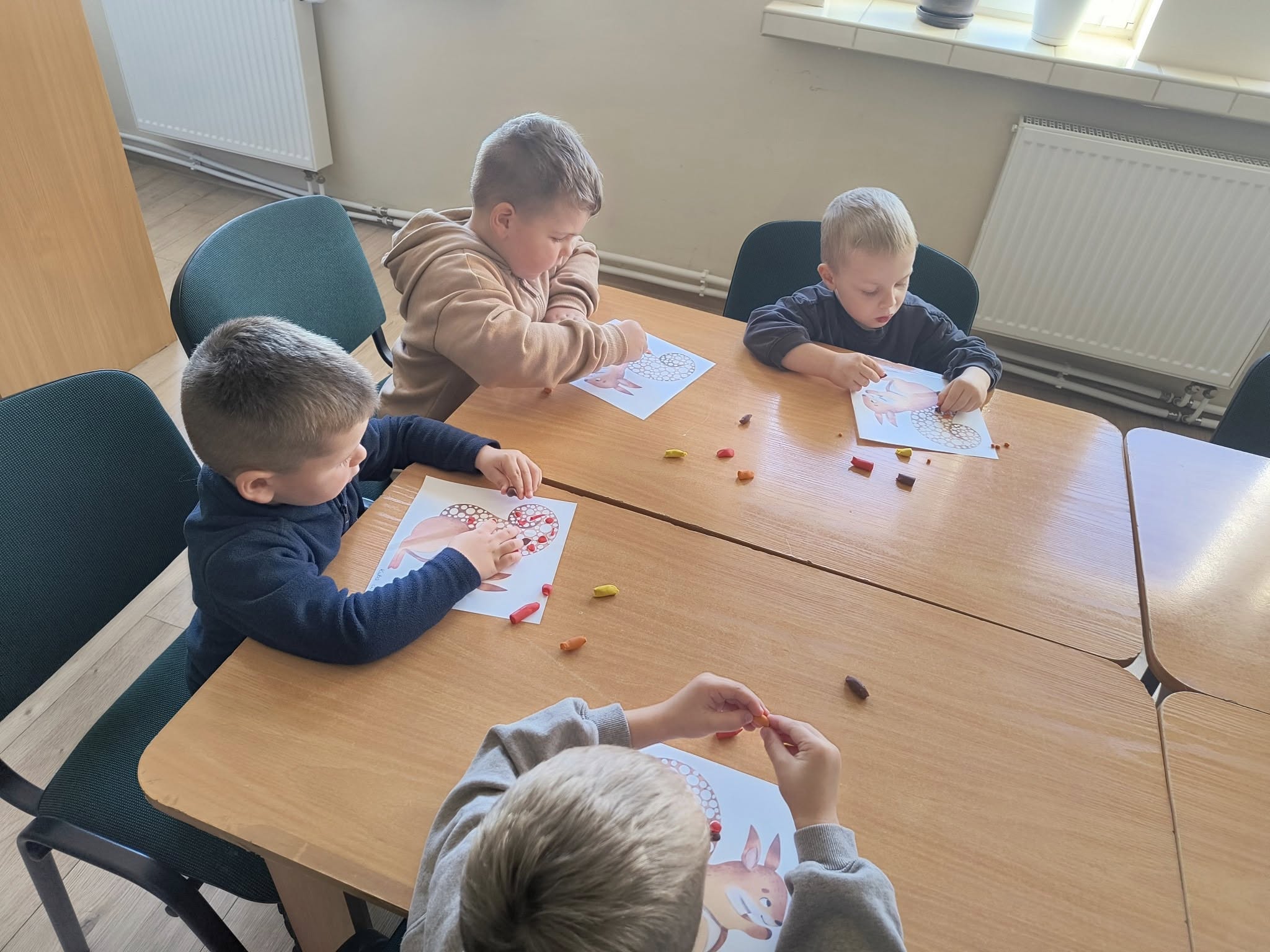 Dzieci słuchały wciągającego opowiadania „Złodziej liści”, a potem bawiły się przy jesiennych zabawachNie zabrakło też kreatywnych zajęć – przedszkolaki wyklejały wiewiórki, ćwicząc zdolności manualneBył to naprawdę miły czas, pełen uśmiechów, kolorowych liści i dobrej zabawy w świecie książek.