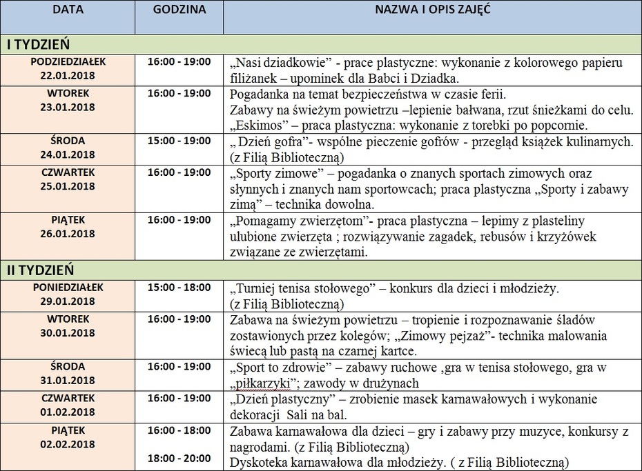 FERIE ZIMOWE W ŚWIETLICY WIEJSKIEJ W GARBNIE