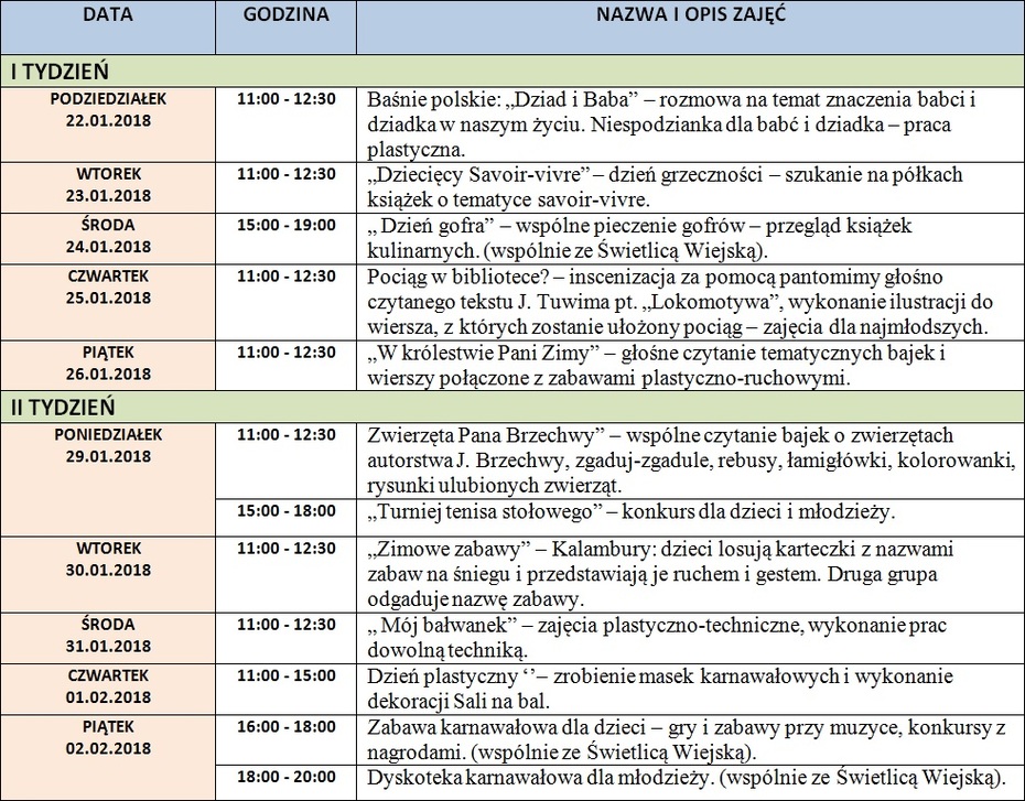 FERIE ZIMOWE W BIBLIOTECE I ŚWIETLICY WIEJSKIEJ W GARBNIE