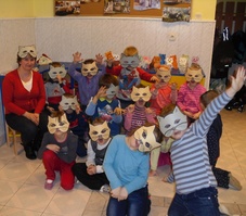 Uczniowie kl.0 przyszli do biblioteki dobrze przygotowani, mieli wykonane własnoręcznie koty z papieru, oraz maski, co dodawało powagi tego święta. Rodzice z dziećmi z Grupy Zabawowej także wykonali śliczne kotki, z których Maluszki były bardzo dumne.
