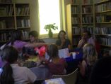 Po przywitaniu zaczęły swój występ.Recytowaływiersze,w którychwyraziły miłość i podziękowanie za trud wychowania. ZaśpiewałypiosenkęMajkiJeżowskiej pt." A ja wolę moją mamę". Wystąpiły z inscenizacjąutworu" Lustereczka" D. Gellner-o małychkobietkach, które bardzo lubią przeglądać się w lustrze. Miłymakcentembyło wręczenie dla swoich Mammałychbukiecików z kwiatów zrobionych z bibuły przy pomocy babci jednej zdziewczynek,która brała udział w przedstawieniu.Dziecizadbały aby uroczystość przebiegła w miłej atmosferze. Przy małejpomocybibliotekarki przygotowały dekoracjęoraz małypoczęstunek.