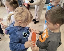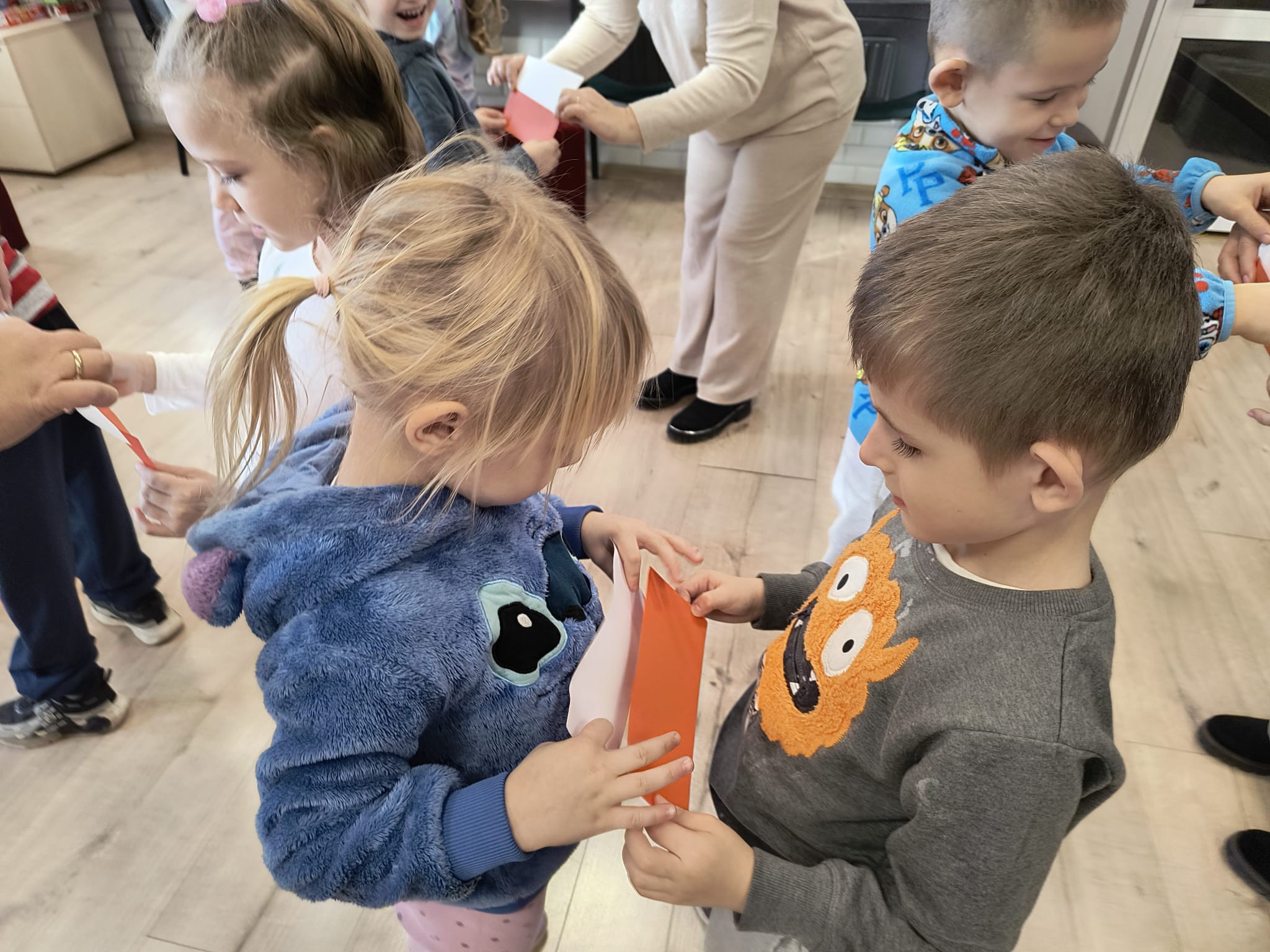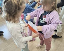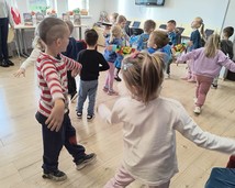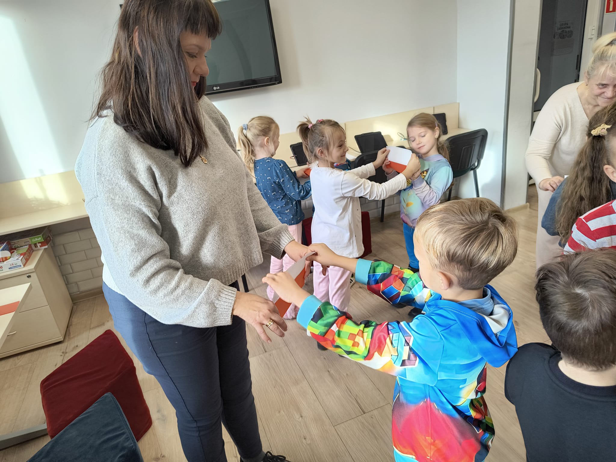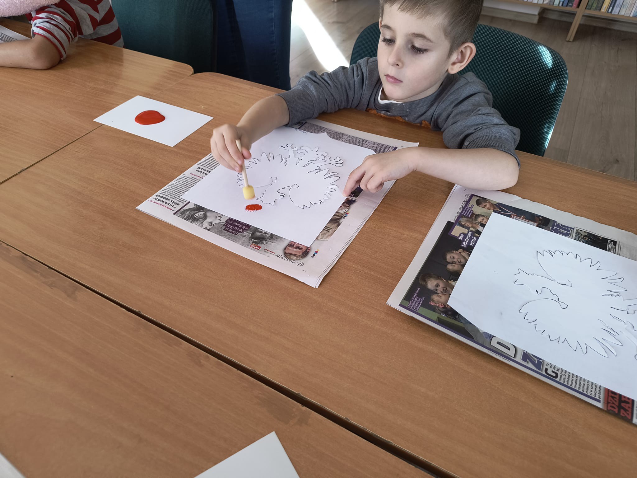Spotkaliśmy się, aby porozmawiać o Święcie Niepodległości. Przedszkolaki z zainteresowaniem wysłuchały książki o polskich symbolach narodowych i chętnie brały udział w rozmowie. Po tematycznych zabawach wykonały godła Polski.