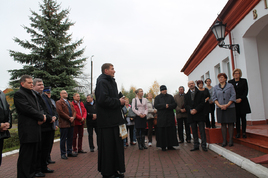 Uroczystość zapoczątkowana została symbolicznym przecięciem wstęgi. Następnie proboszcz- ksiądz Tomasz poświęcił obiekt. W dalszej kolejności goście przeszli do wnętrza budynku, gdzie najpierw zapoznali się ze stanem nowo wyremontowanych pomieszczeń na poddaszu. Kolejny etap uroczystości miał miejsce w pomieszczeniu głównym wypożyczalni książek. Pani Dyrektor – Jadwiga Hajduk poprowadziła tam jego dalszą część. Pierwszym, który zabrał głos, był Burmistrz Ryszard Ostrowski. Przypomniał on pokrótce historię obiektu i proces inwestycyjny, a następnie podziękował wszystkim, dzięki którym udało się zrealizować remont. Burmistrz na koniec życzył, aby budynek dobrze służył mieszkańcom przez wiele lat.