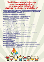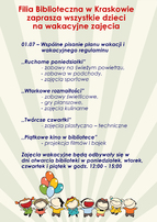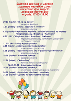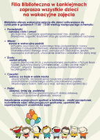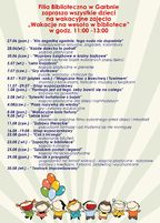 Poniżej przedstawiamy szczegółowy plan zajęć wakacyjnych, jakie oferujemy naszym najmłodszym czytelnikom w poszczególnych placówkach: