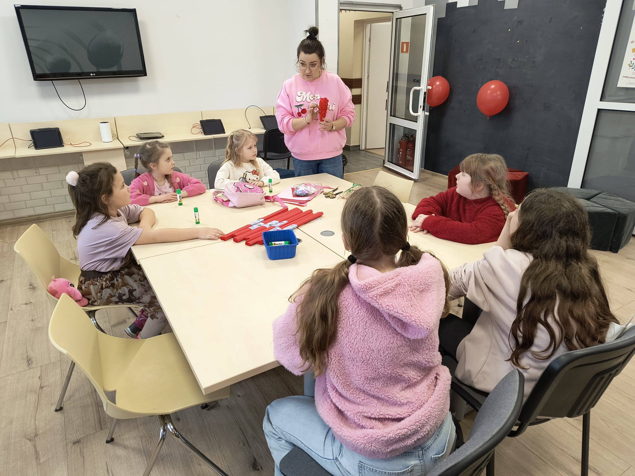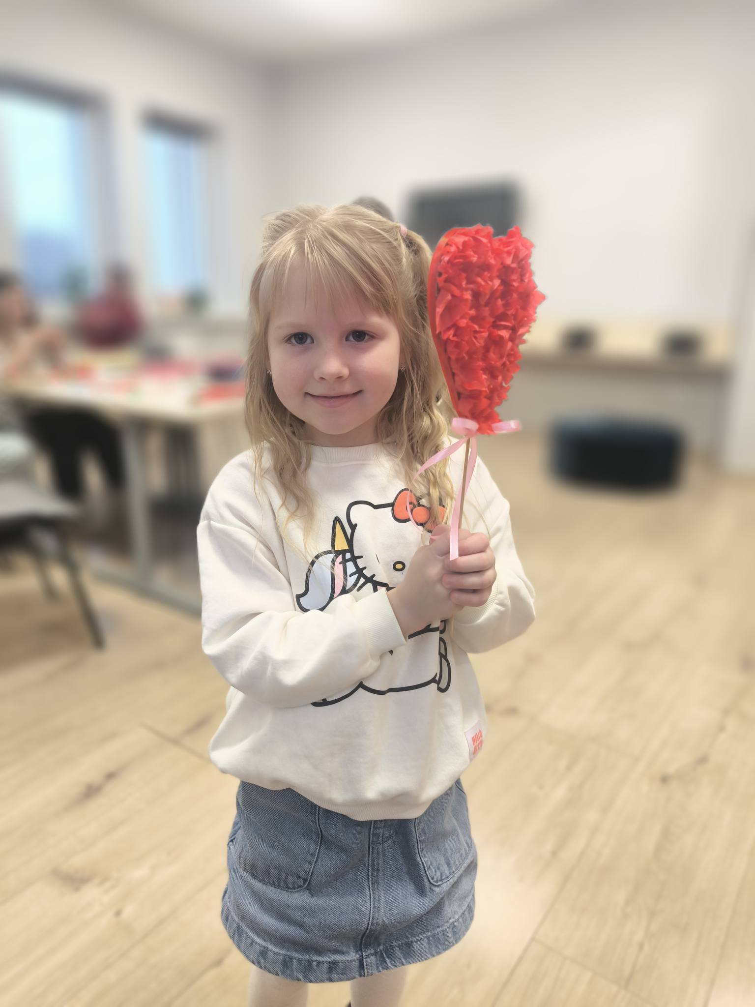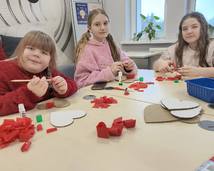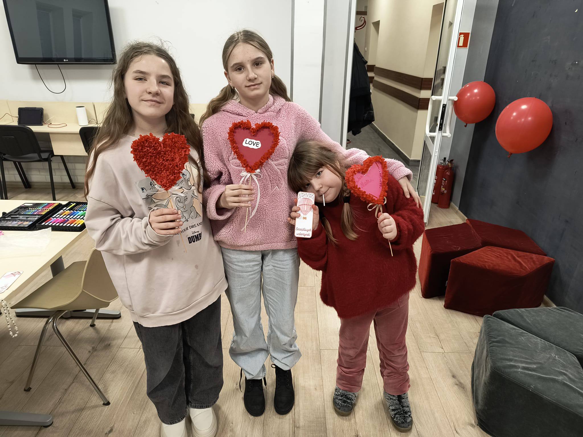 W piątkowe popołudnie dzieci z ogromnym zaangażowaniem tworzyły walentynkowe serca z bibuły. Było wycinanie, klejenie, zwijanie i mnóstwo kreatywnej pracy. Czerwone skrawki bibuły szybko zamieniały się w wyjątkowe, puszyste serduszka. Każda praca była niepowtarzalna i wykonana z wielką starannością.