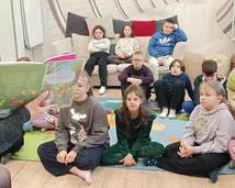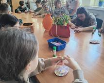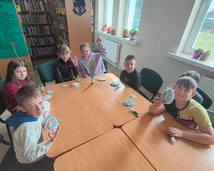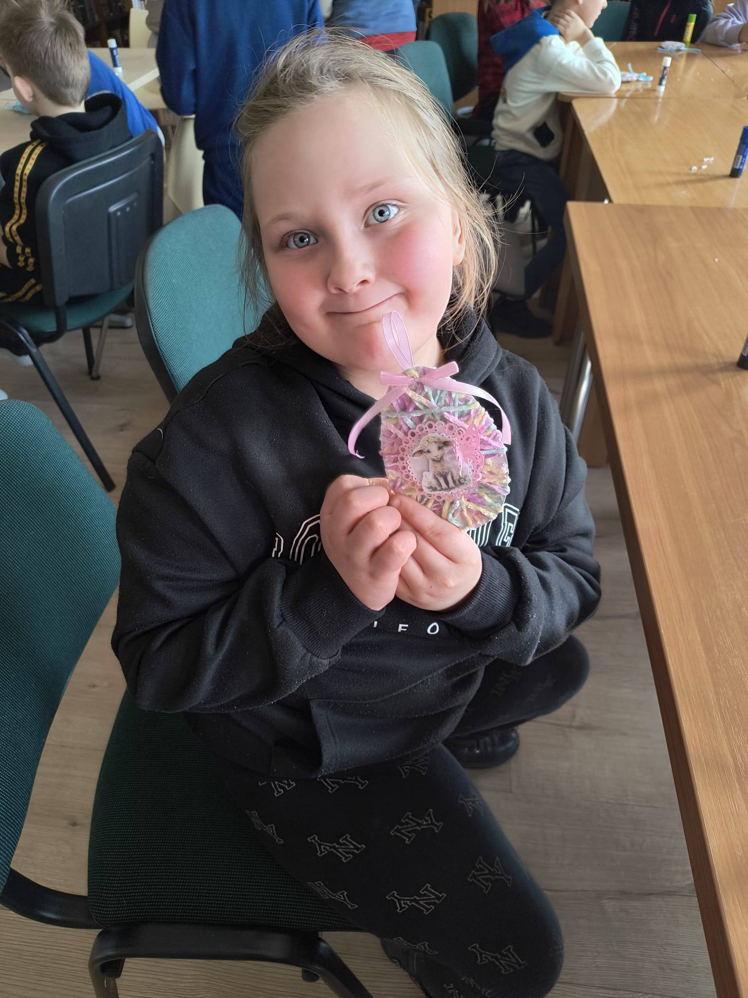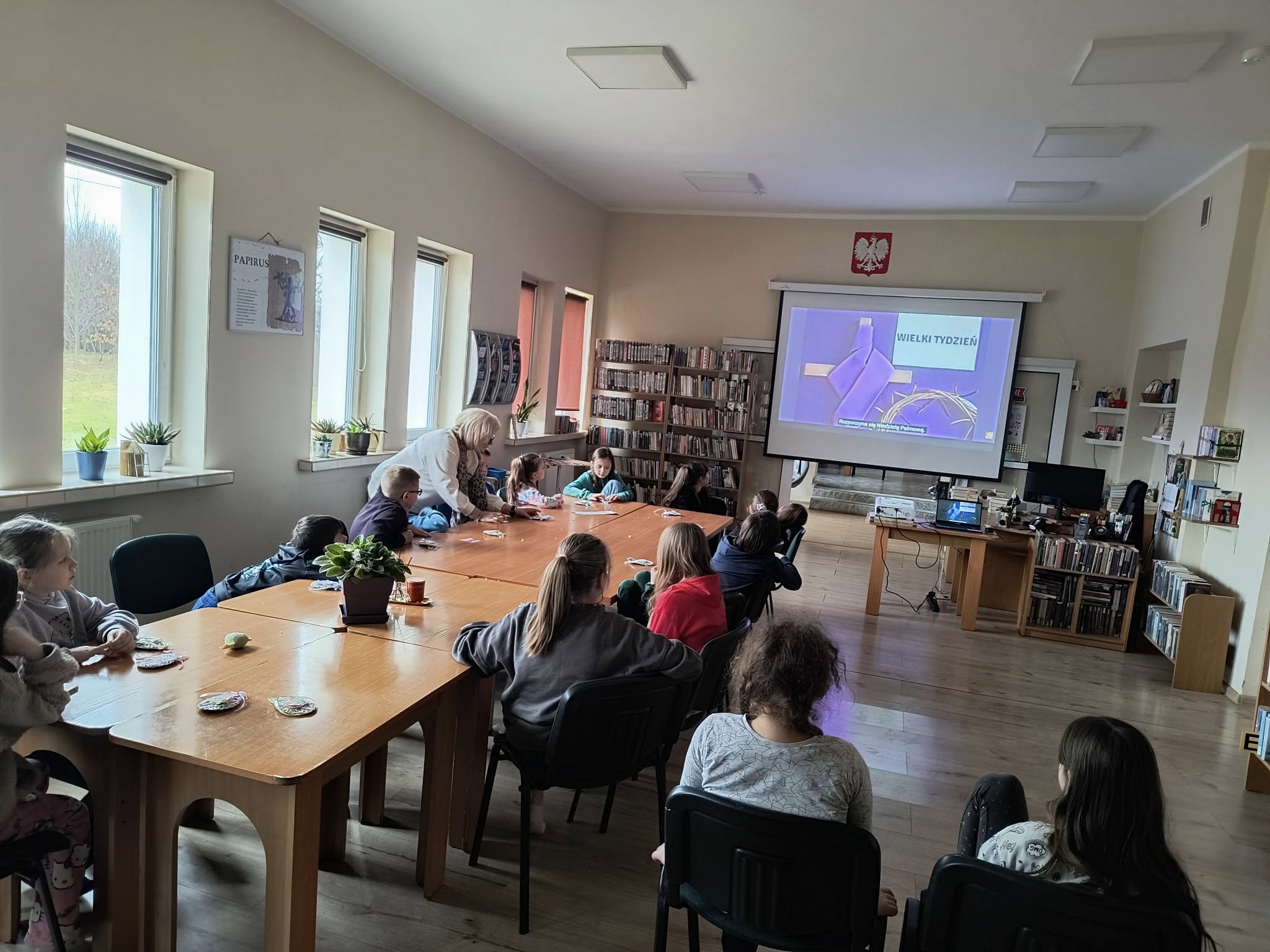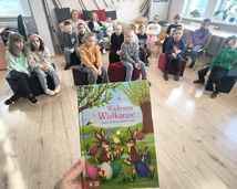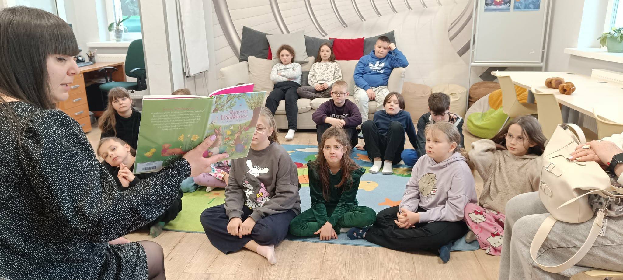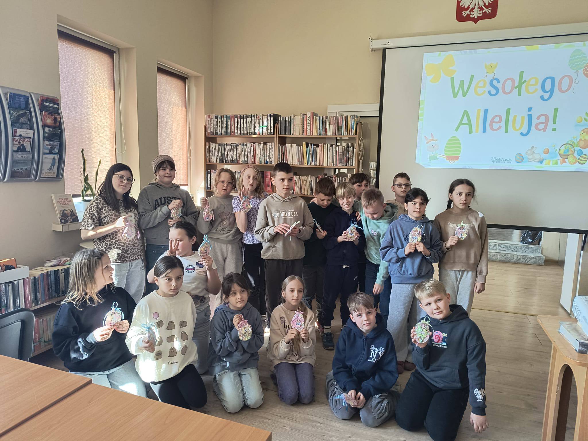 Każde spotkanie rozpoczynało się od wspólnej lektury fragmentów książek o tematyce świątecznej, które wprowadzały dzieci w nastrój Wielkanocy oraz inspirowały do rozmów o tradycjach i zwyczajach związanych z tym wyjątkowym czasem. Uczniowie chętnie dzielili się swoimi doświadczeniami i opowiadali, z czym kojarzą im się nadchodzące święta.Nie zabrakło także dobrej zabawy – dużym zainteresowaniem cieszyły się kalambury, podczas których dzieci z zaangażowaniem odgadywały hasła związane z wiosną i Wielkanocą.