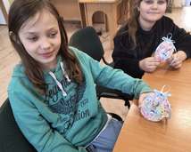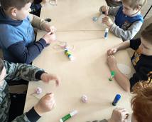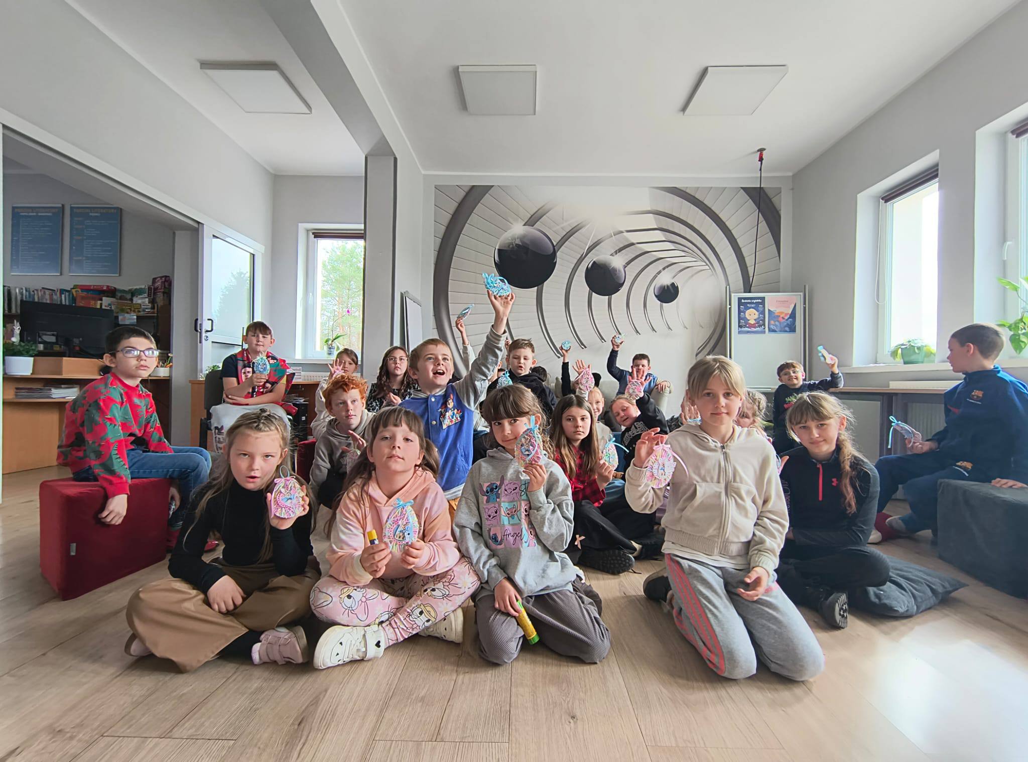 Najbardziej wyczekiwaną częścią spotkań były warsztaty kreatywne. Uczniowie tworzyli piękne, kolorowe jajka z włóczki oraz papieru, łącząc różnorodne kolory i faktury. Powstałe prace zachwycały pomysłowością i starannością wykonania, a całemu procesowi towarzyszyło wiele radości i uśmiechów.Podczas wizyt mieliśmy przyjemność gościć m.in. uczniów Szkoły Podstawowej w Korszach oraz Szkoły Podstawowej w Łankiejmach. Każde spotkanie było okazją do integracji, wspólnej zabawy i twórczego działania.Na zakończenie wybranych warsztatów dzieci obejrzały krótki film o tematyce wielkanocnej, który stanowił miłe podsumowanie wspólnie spędzonego czasu.