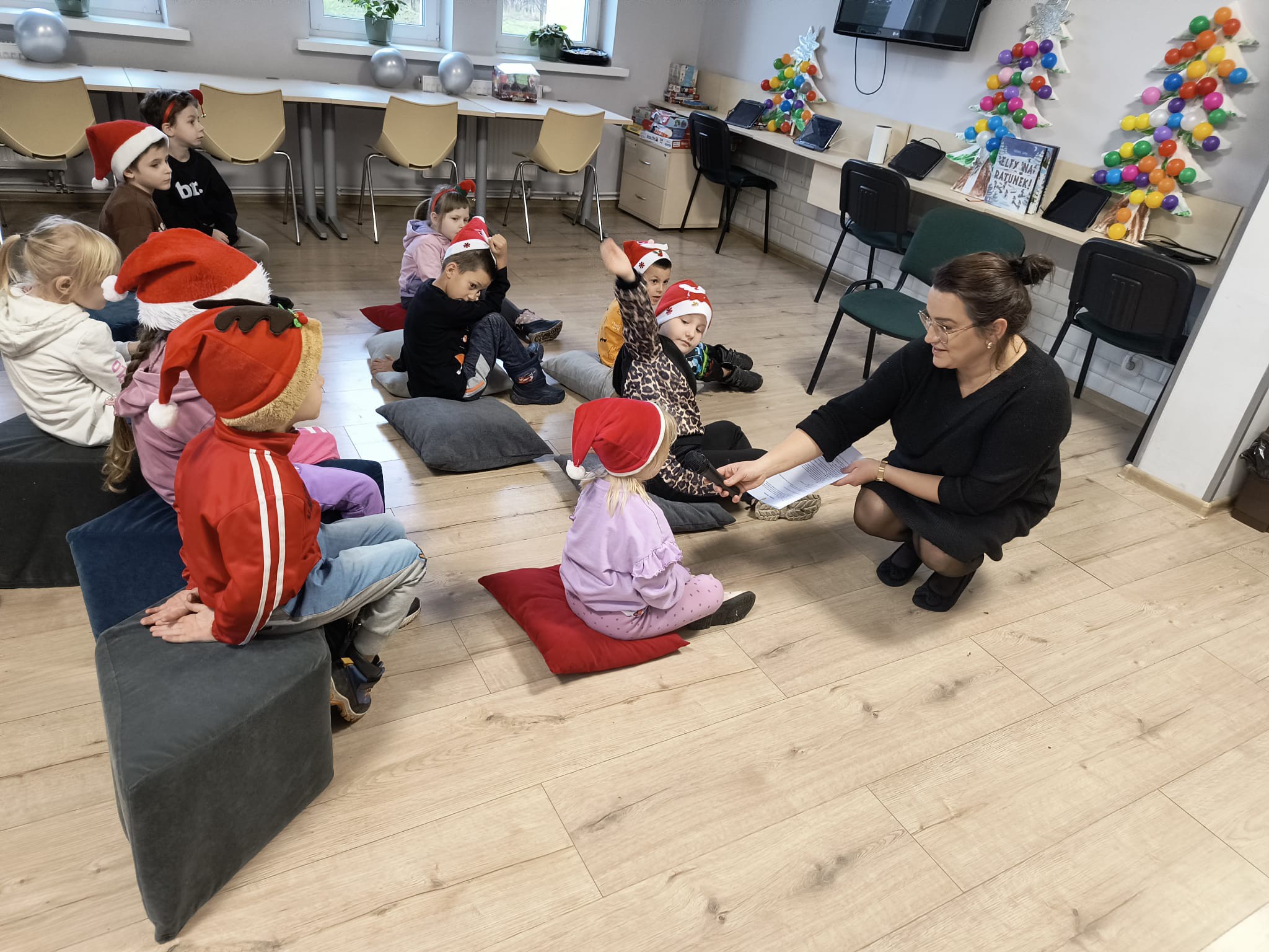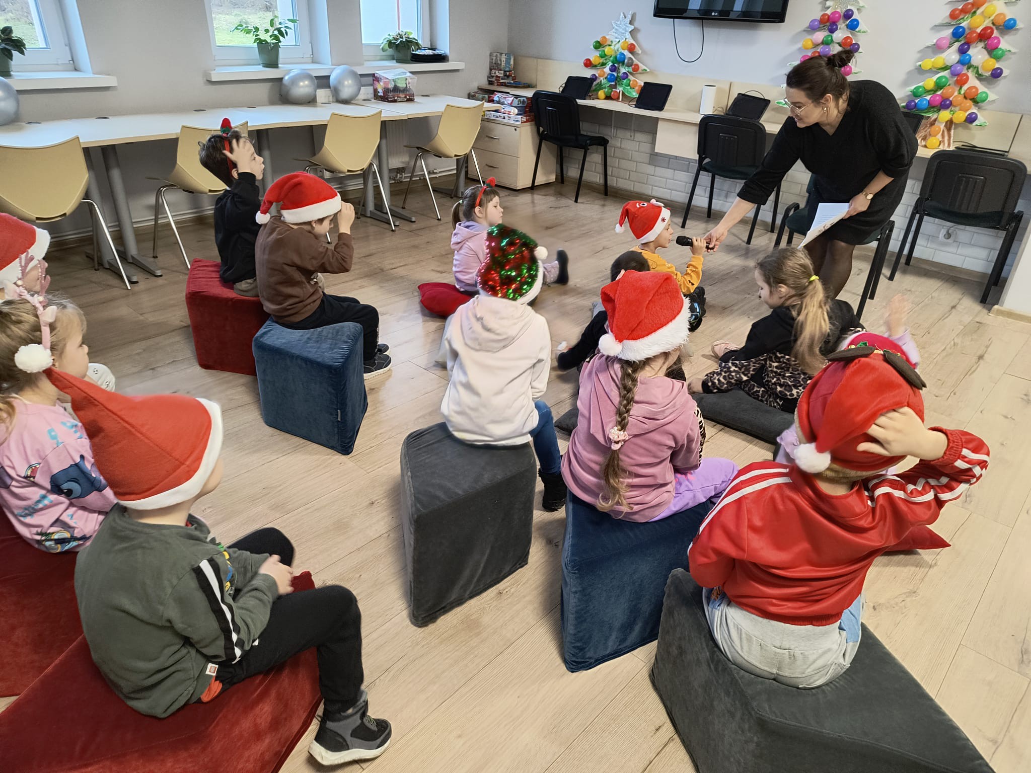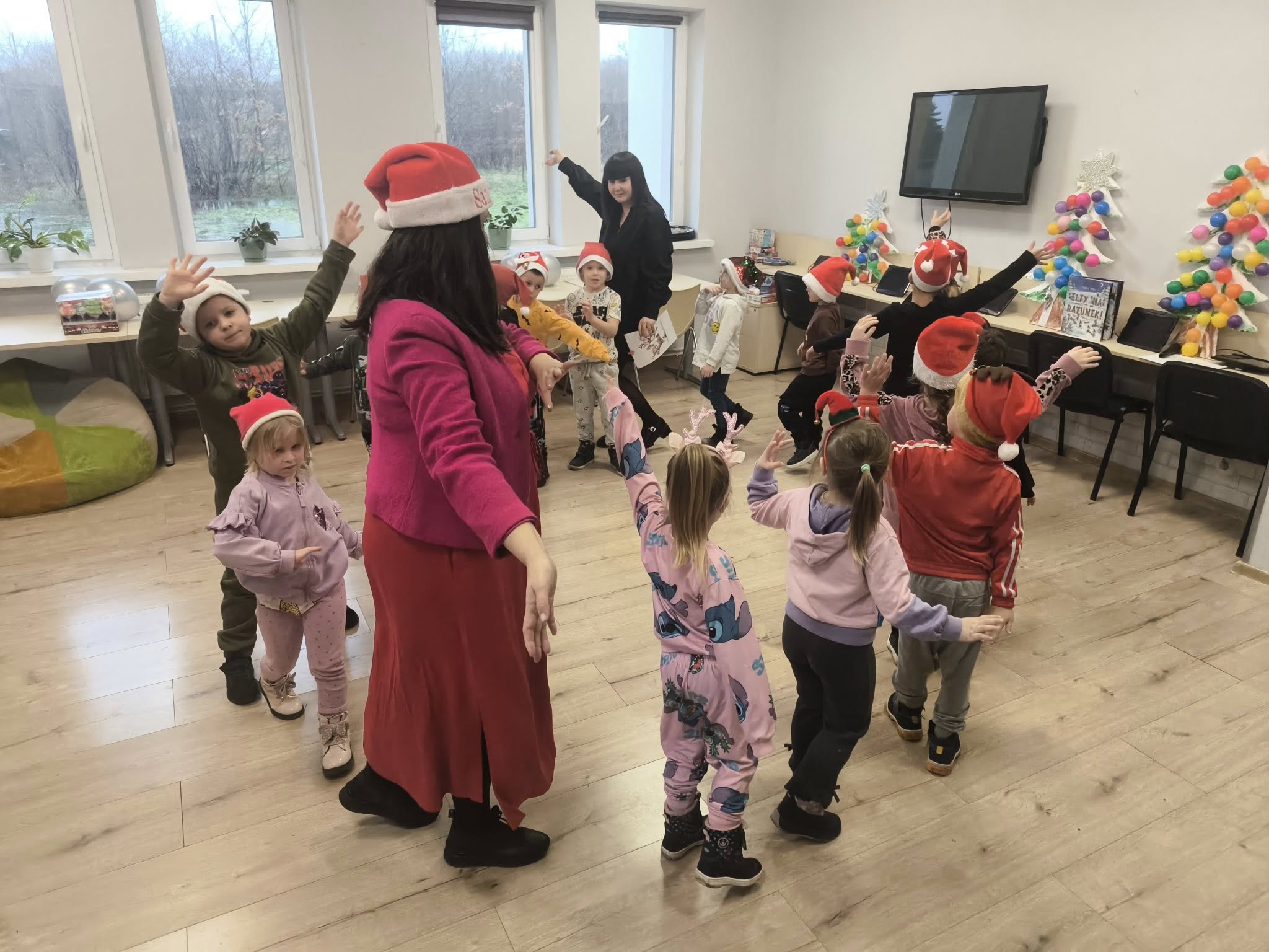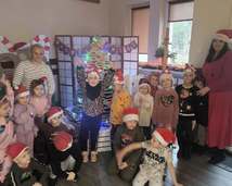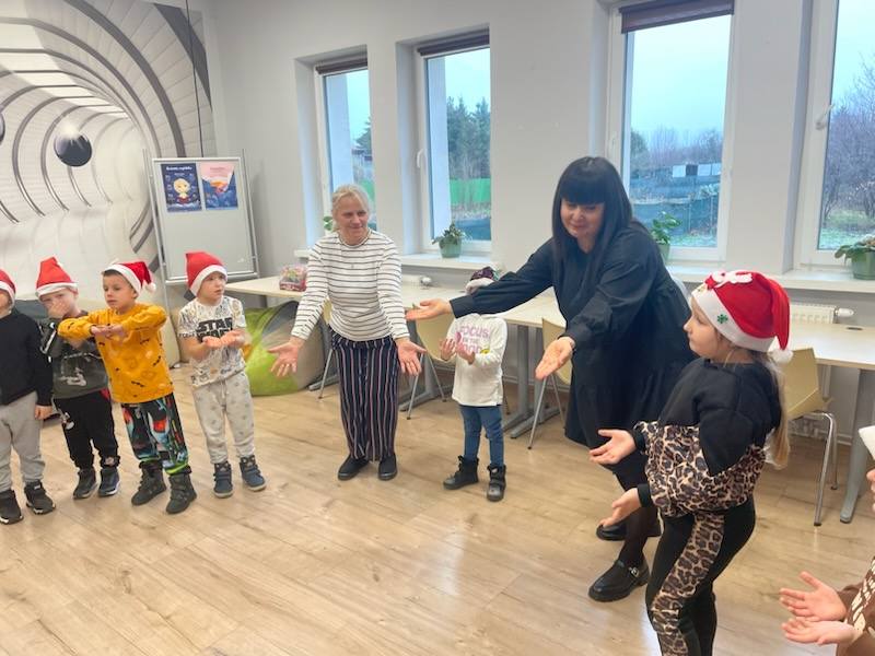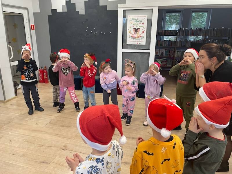 Tuż po wejściu czekała na nie wyjątkowa niespodzianka – list od Elfa Psotnika, który przygotował dla nich pełen radości teleturniej o zimie, świętach i… oczywiście o elfach! Dzieci poradziły sobie znakomicie, wykazując się wiedzą, humorem i ogromnym zapałem. Nie zabrakło też tańca i śpiewu!