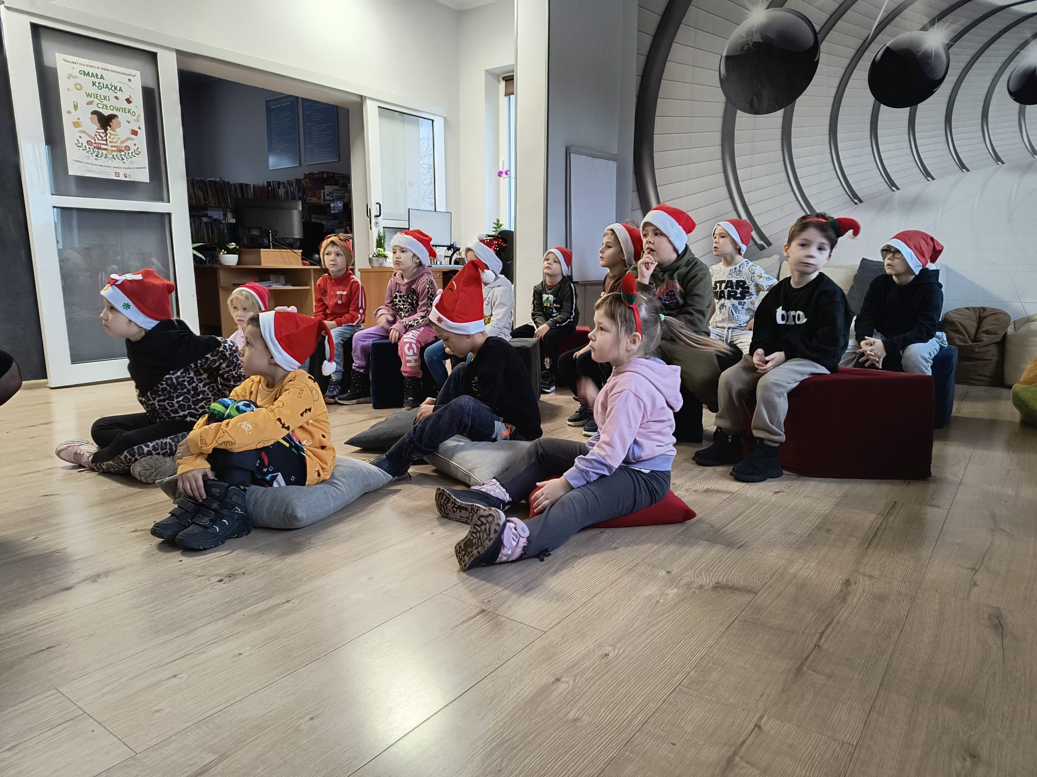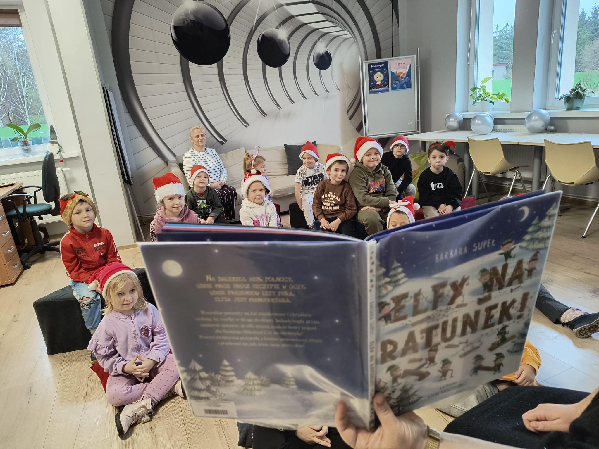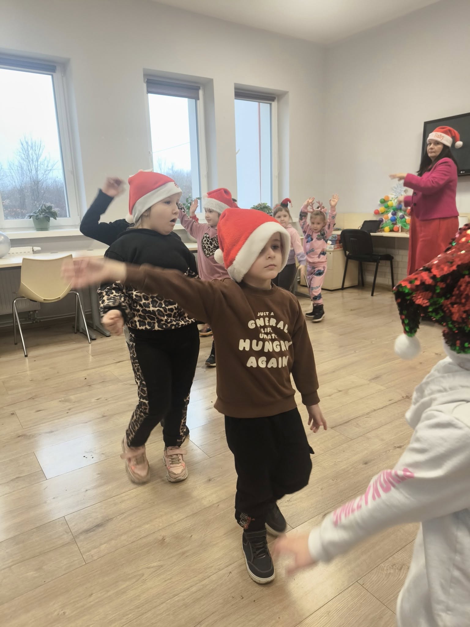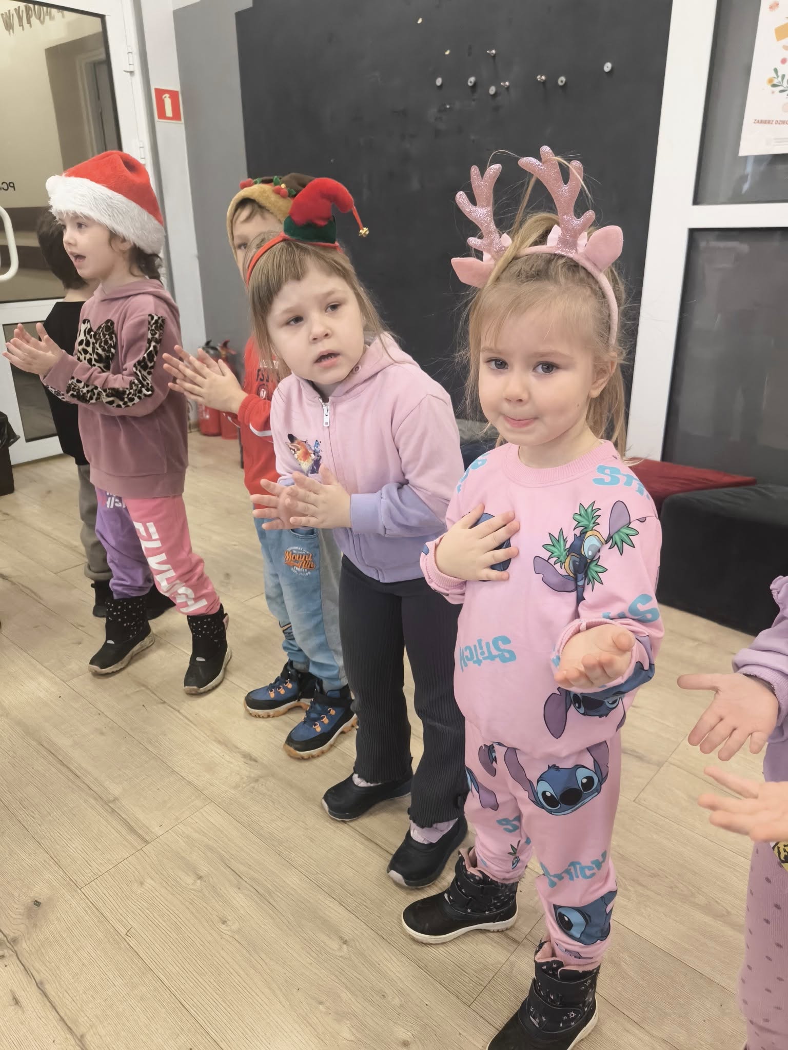 Tuż po wejściu czekała na nie wyjątkowa niespodzianka – list od Elfa Psotnika, który przygotował dla nich pełen radości teleturniej o zimie, świętach i… oczywiście o elfach! Dzieci poradziły sobie znakomicie, wykazując się wiedzą, humorem i ogromnym zapałem. Nie zabrakło też tańca i śpiewu!
