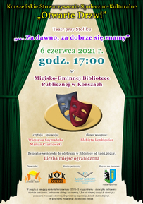 Korszeńskie Stowarzyszenie Społeczno-Kulturalne „Otwarte Drzwi” zaprasza miłośników teatru na spotkanie z „Teatrem przy Stoliku” w ramach projektu „Cykl spotkań z kulturą wyższą dla dzieci i dorosłych”.