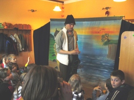 Teatralnych ART-RE z Krakowa. Aktorzy zaprezentowali bajkę Aleksandra Puszkina pt. Złota Rybka”. Podczas spektaklu mali i więksi widzowie przenieśli się nad morski brzeg, gdzie swoją opowieść rozpoczął miejscowy rybak. Opowiedział on o swoich losach, jego kapryśnej żonie i towarzyszącej im Złotej Rybce. Teatralna adaptacja bajki to lekka forma wspólnej zabawy. Dzieci były współtwórcami spektaklu, z uwagą obserwowały sceniczne wydarzenia, łowiły ryby do sieci rybackiej, z zaangażowaniem pomagały w tworzeniu bajkowej historii. Morał bajki mówi o uczciwości i szacunku, należy cieszyć się z tego, co się ma bo chciwość nie popłaca ,dobro zostaje nagrodzone, a zło ma szansę się poprawić.